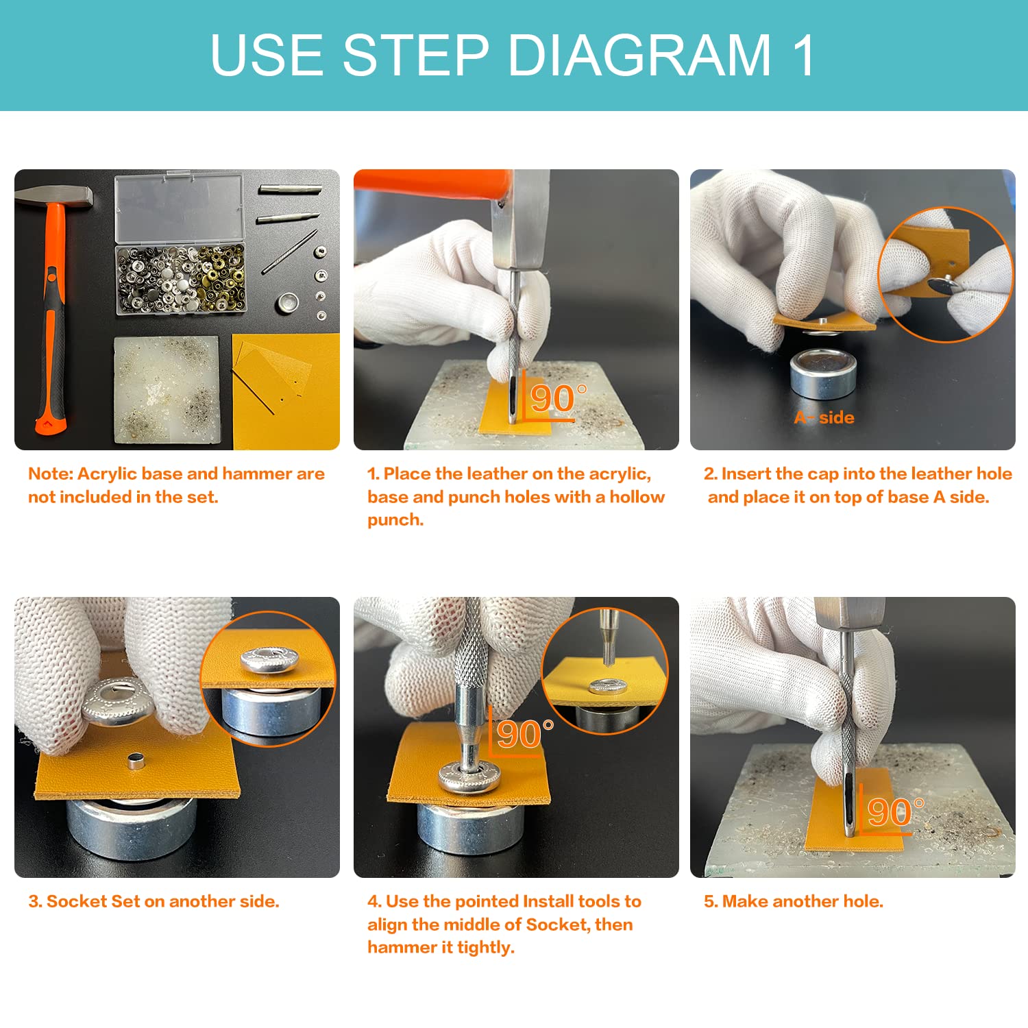 • 【MATERIAL】Snaps fasteners kit made with high quality and stainless steel nickle-free plating craft, withstand daily wear, they can still remain like new even after long time use.