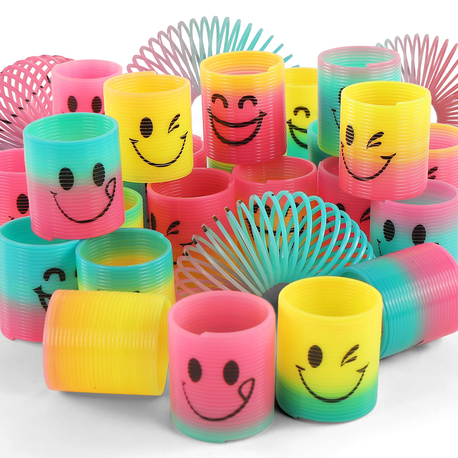 • Value Pack:The Pack came with 48 pcs springs .It is printed on with different smiley them and has bright rainbow colors,bring extra fun.