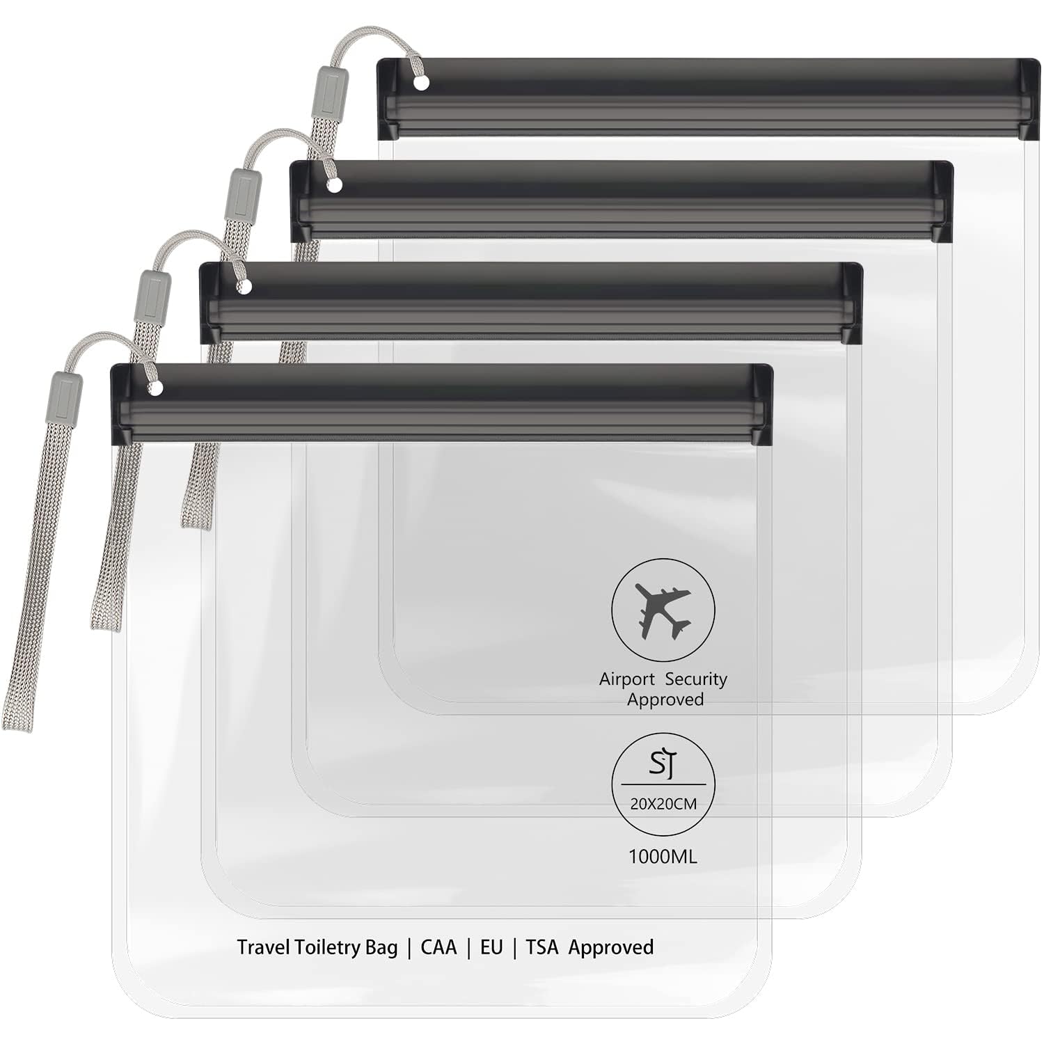 4Pcs Clear TSA Approved Security Toiletry Bag Quart Size for EU UK & US Carry-on Regulations Waterproof & Leakproof Travel Bags for Liquids