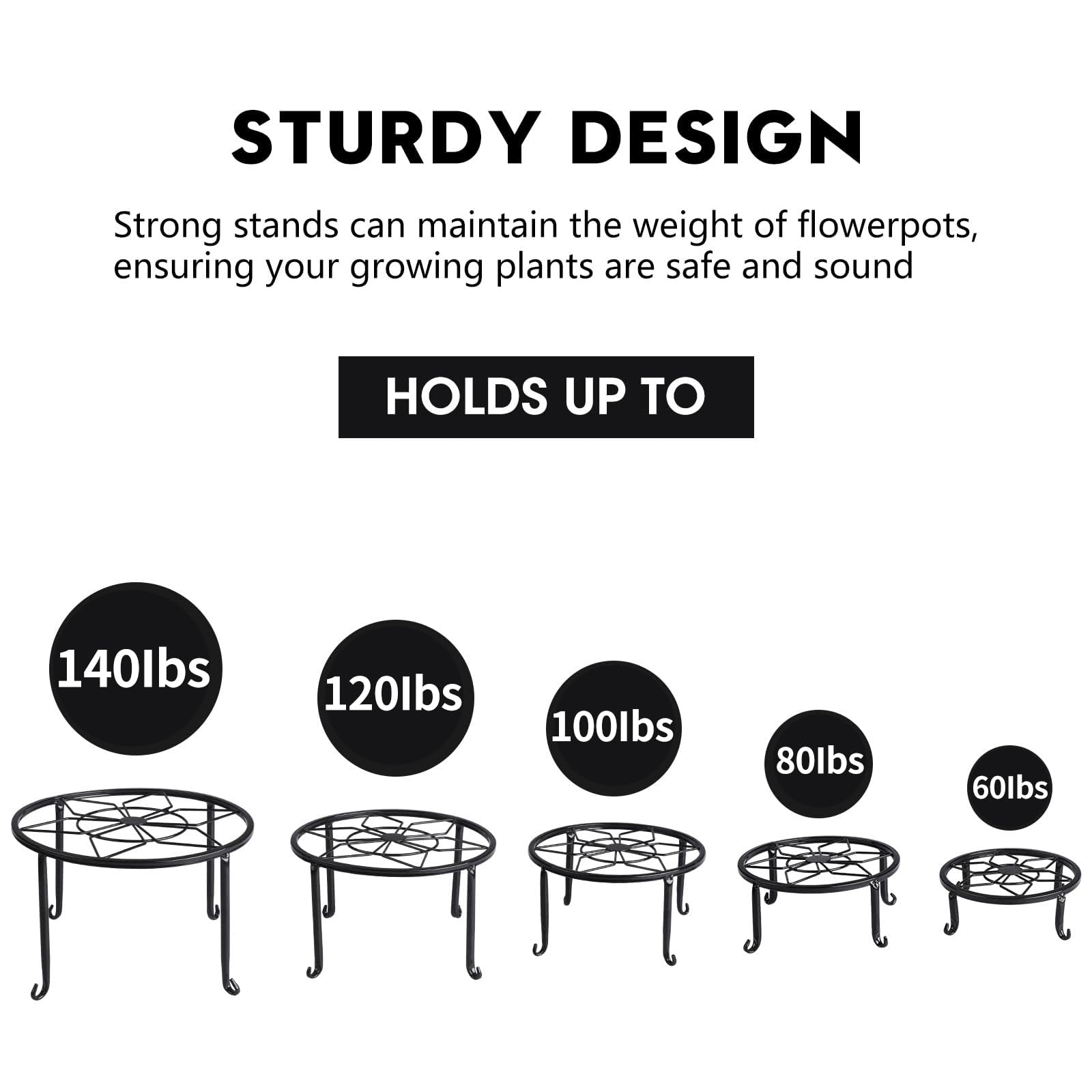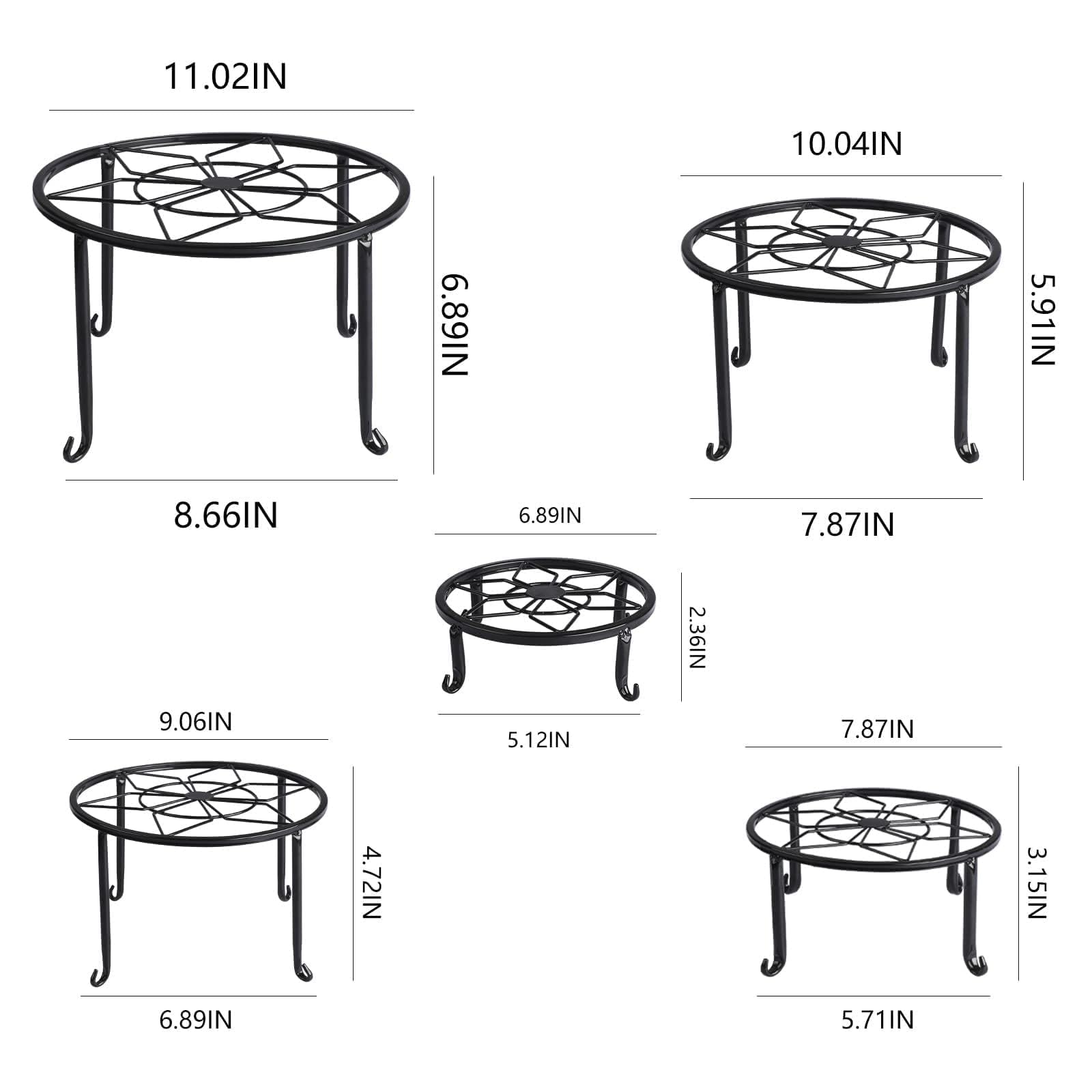 5 Pack Metal Plant Stands,Heavy Duty Potted Holder for Flower Pot,Indoor Outdoor Metal Rustproof Iron Garden Container Round Supports Rack for Planter…