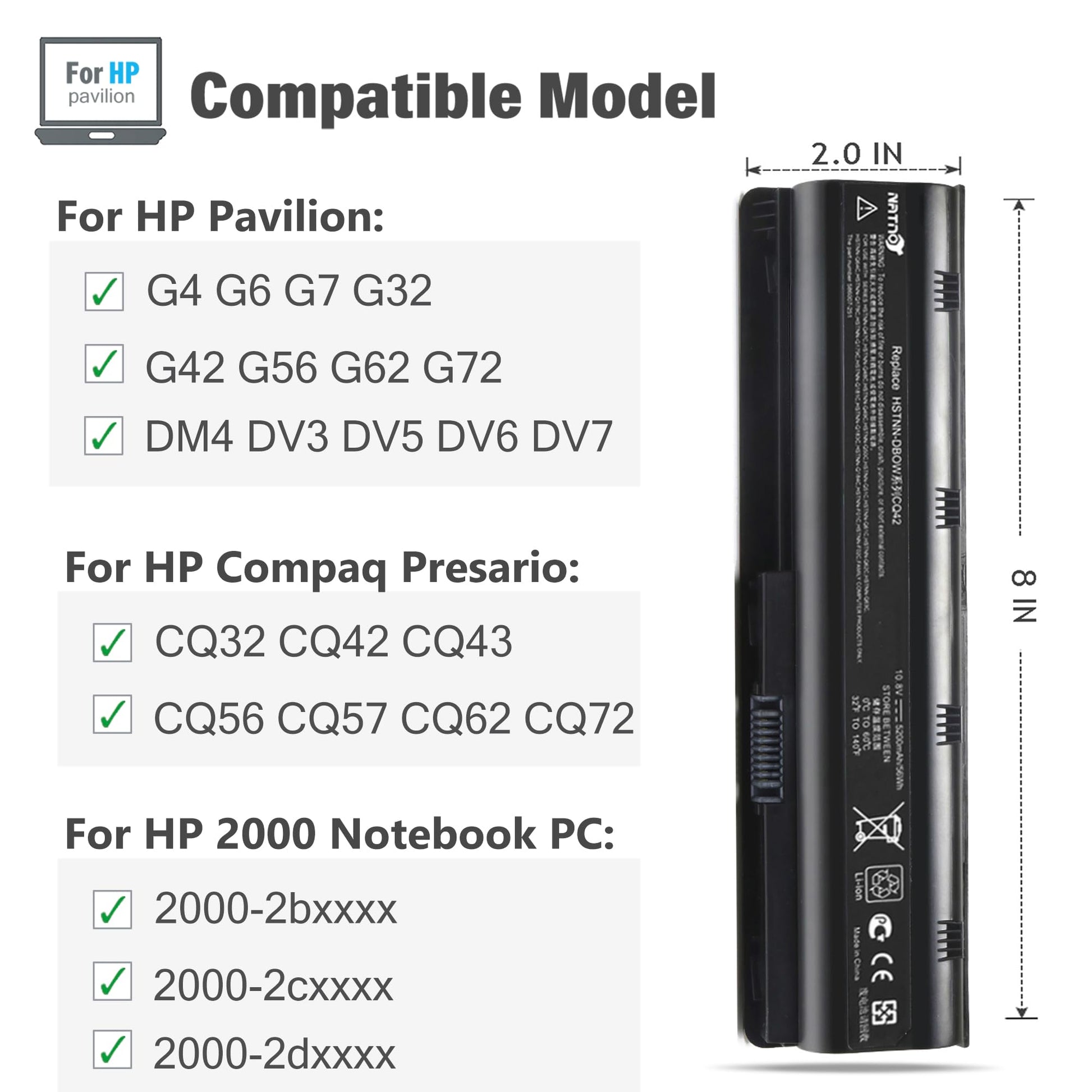 ![593553-001 593554-001 MU06 MU09 Extended Laptop battery for HP Pavilion G6 G7 G62 G72 G4 / 2000 Notebook PC / DV6 DV7 DM4 / Compaq Presario CQ32 CQ42 CQ43 CQ56 CQ57 CQ62 CQ72[10.8V 5200mAh 6Cell]](http://blueshopstore.com/cdn/shop/files/714uufMTAFL.jpg?v=1757820461&width=1445)