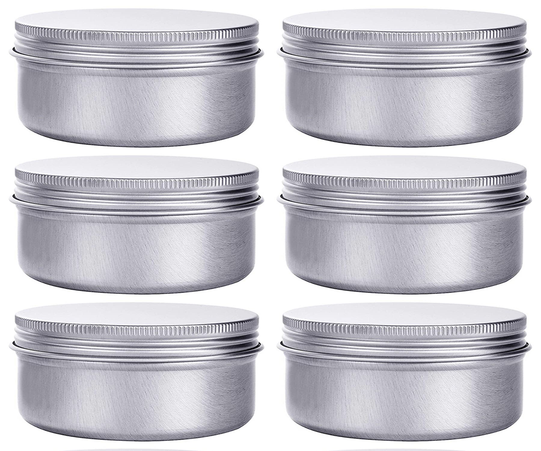 6 Ounce Aluminum Cans 180 mL Screw Lid Metal Storage Tins Containers for Storing Spices, Candies, Lip Balm, Candles, 6 Pcs.