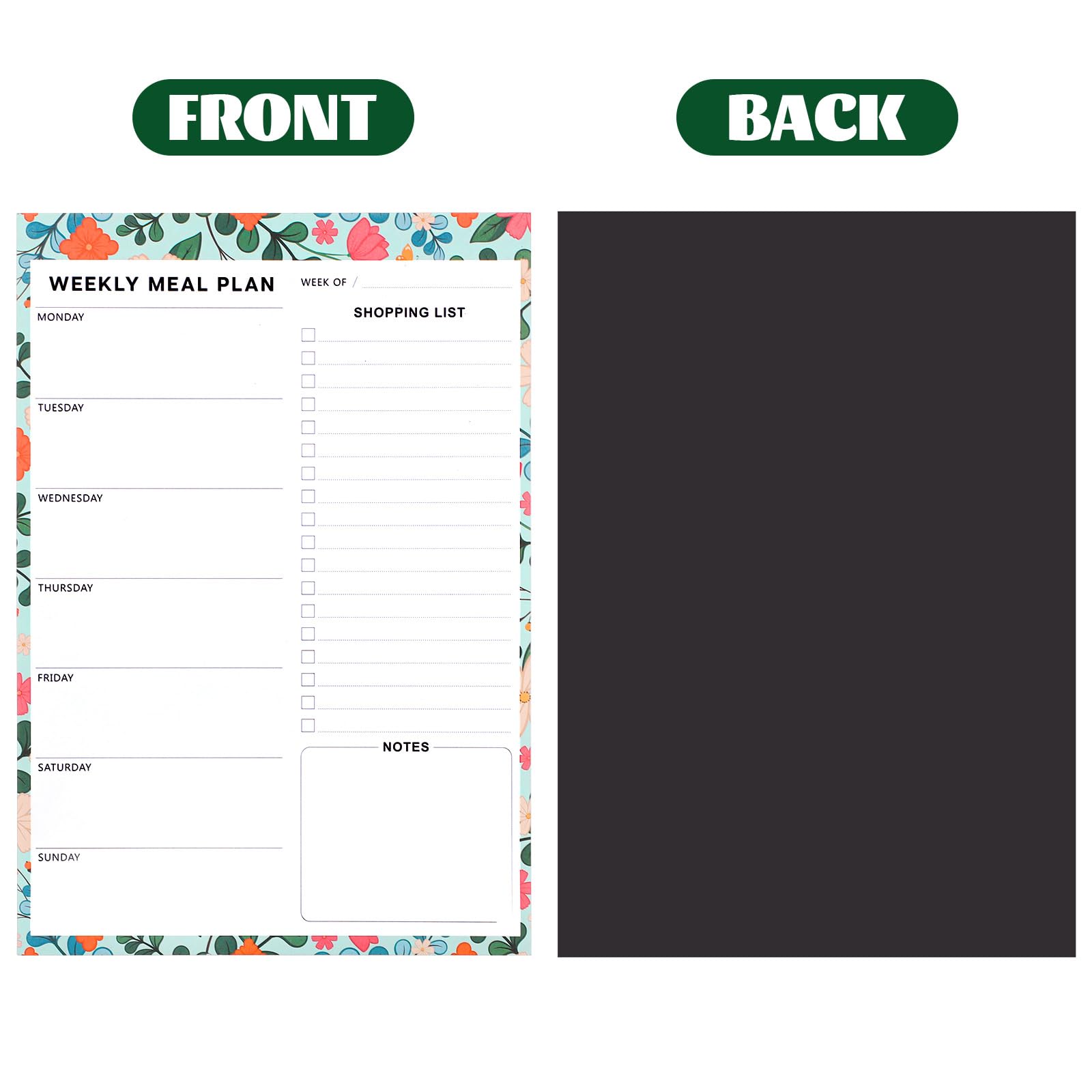 60 Sheet Meal Planner for Fridge, Magnetic Weekly Meal Planner & Grocery List with Tear-off Shopping List for Meal Prep, 7x10''-Flower Design
