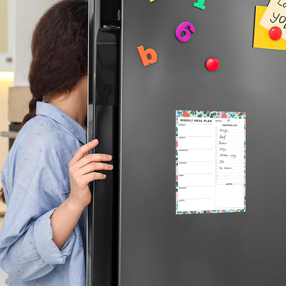 • 【Easy Tear-Off Shopping List】The magnetic meal planner for refrigerator is easy to tear off, which is convenient for updating your meal plan. The shopping list can be torn off and taken to the supermarket. It is more convenient to shop according to the list