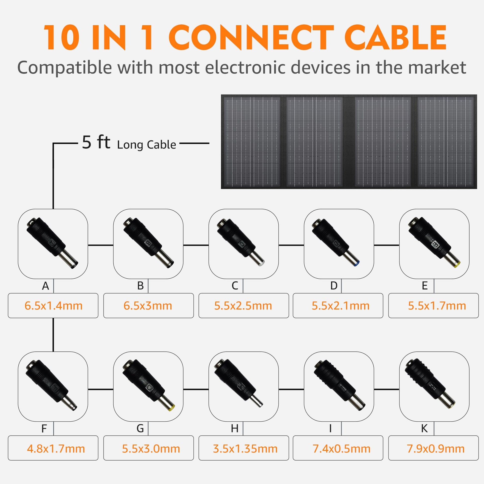 • 【Compatible with Most Solar Generators】The 60W foldable solar panel equipped with 10*DC Connectors, compatible with most portable power stations/solar generators on the market.