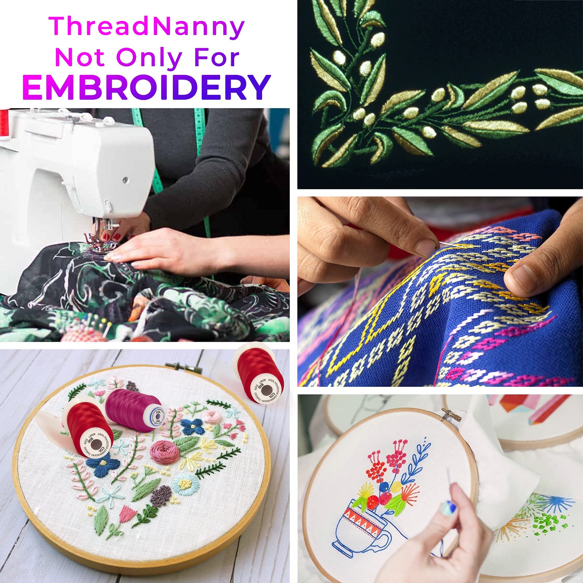 • NO MORE COLOR BLEEDING: ThreadNanny embroidery thread kit set is color fast, and will hold up to any commercial or home laundering. Includes all basic colors like black, white, red, blue, and a big assortment of bundles of bright and dark colors.