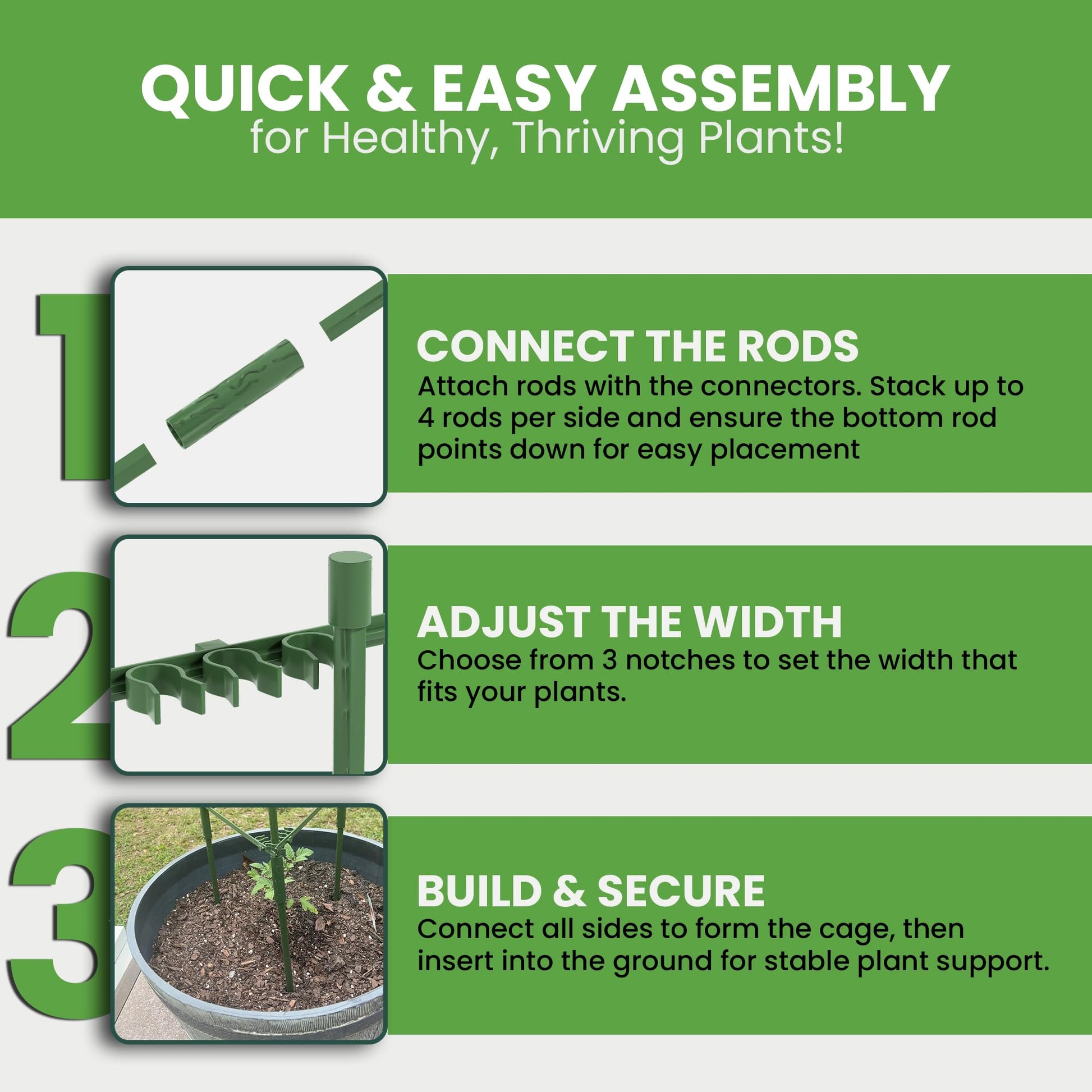 • SUPPORT YOUR PLANTS DURING GROWING SEASON – Achieve the perfect fit for your plants with fully adjustable support. Our snap-on clips allow you to effortlessly modify the cage's shape (triangle or square), adjust the height as your plants grow, and even expand or narrow the width. This flexibility ensures your plants receive continuous, customized support throughout the growing season.