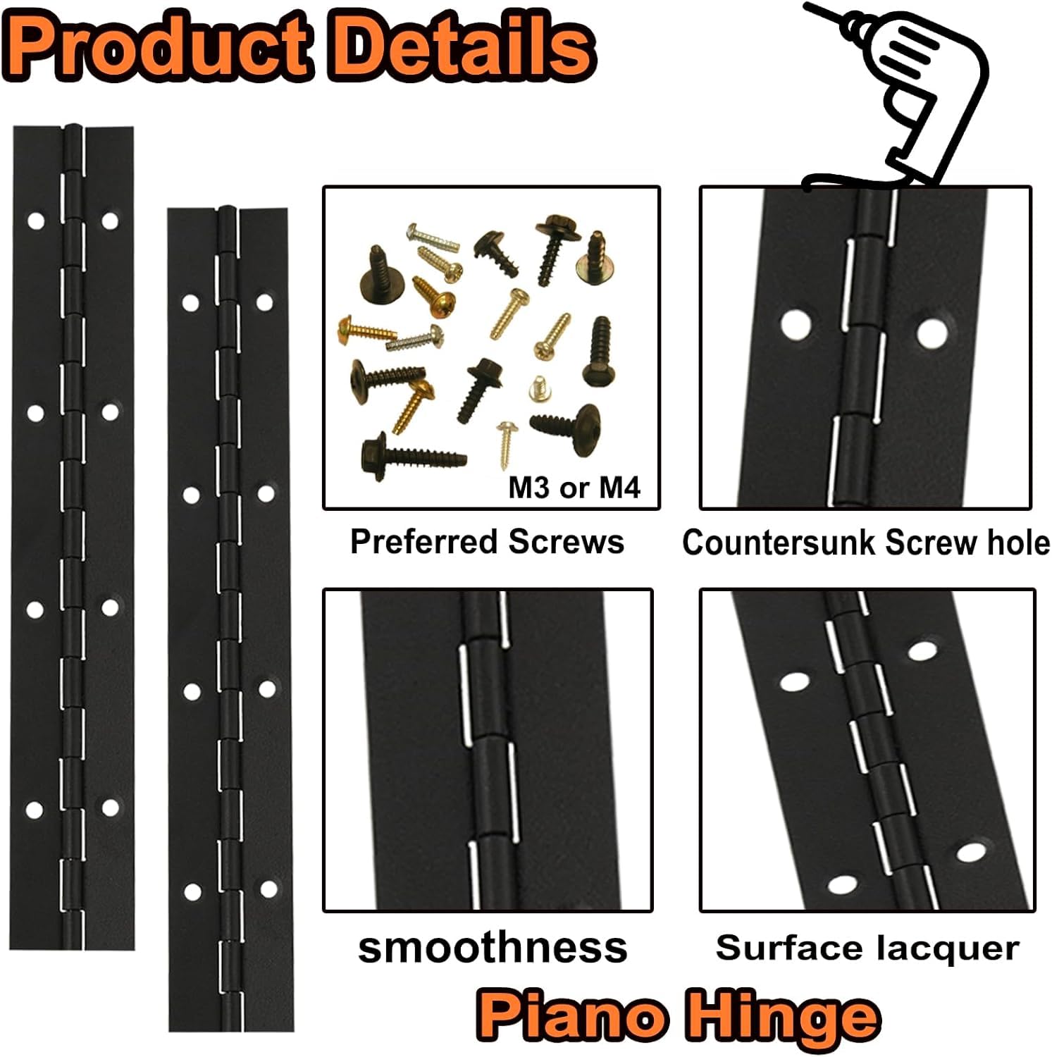 • ☆ 12 Inch Piano Hinge ☆: Made of high quality stainless steel, corrosion and rust resistant; The surface of the continuous hinge is plated by black, which touches smoothly, can be used for a long time