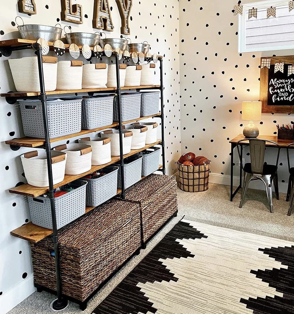• If you love to DIY the pipe shelf,Then our shelf is your perfect choice,This shelves system can be standing from floors also can be hung from ceilings. The shelf is up to five layers, but you can reduce the number of layers according to your needs