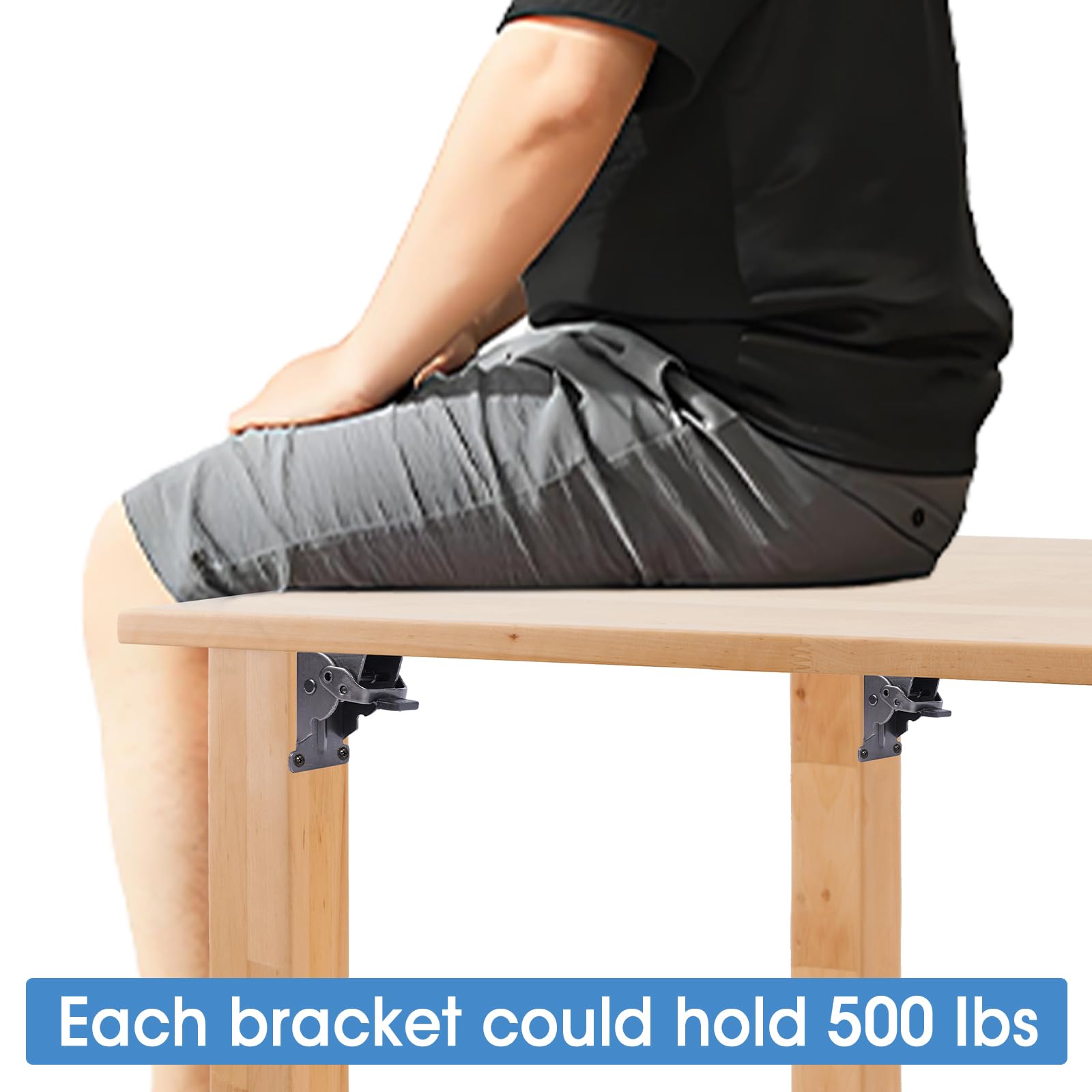 • 【HIGH QUALITY & HEAVY DUTY】The folding table leg brackets can hold up to 500 pounds and locks in the 90 degree position, and the self locking hinges easily meet your needs.