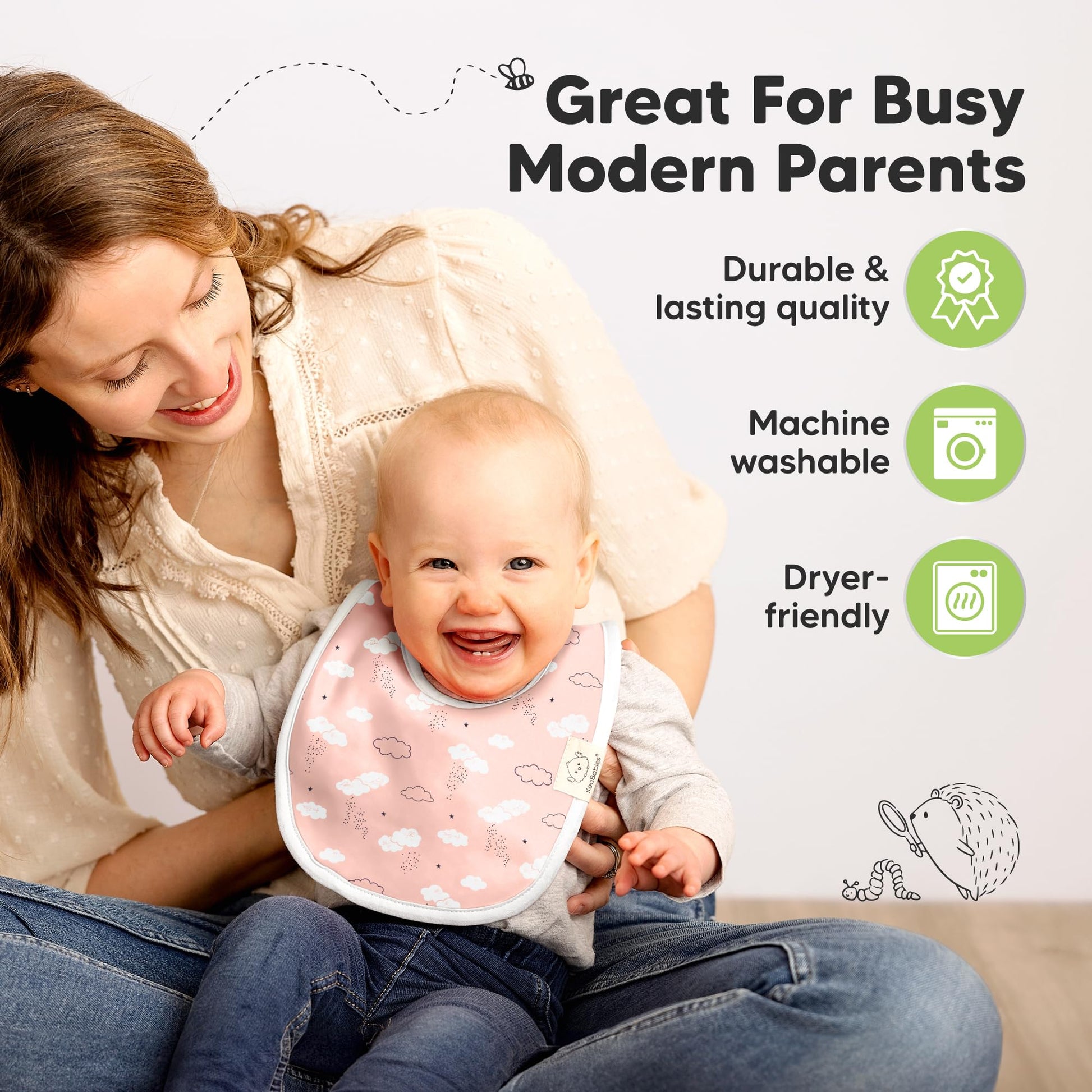 • 8-Pack Cute and Fun Baby Bibs for Boy and Girl - Our organic baby boy bibs and girl bibs are exclusively designed by KeaBabies to ensure that your baby never runs out of styling options. Our baby bibs are unisex and easy to match, making them a fuss-free teething baby essential.