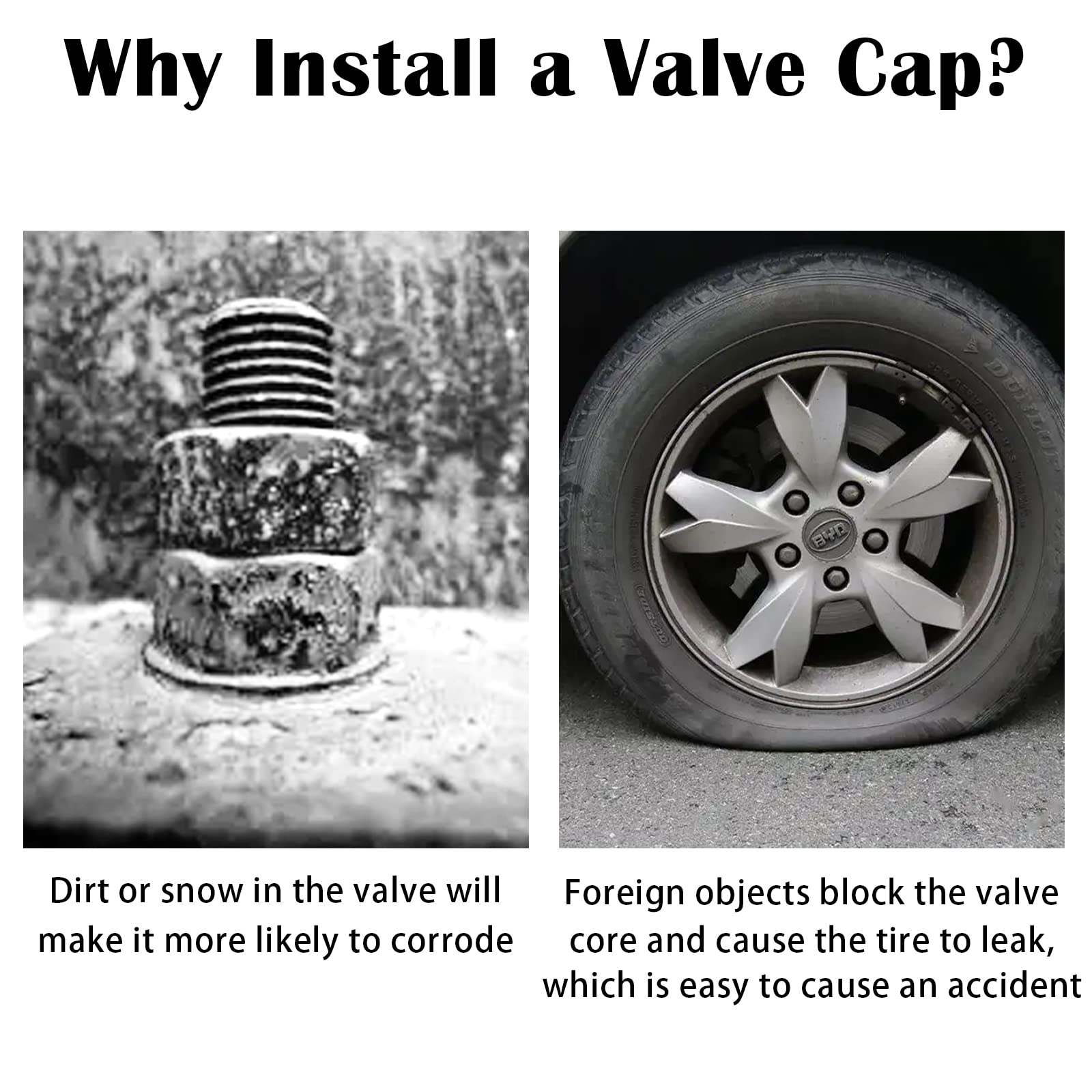 Wide range of uses: tire valve cover size is 0.5*0.63inch, inner diameter is 0.32inch. Universal fits standard US valves. Suitable for most cars, buses, SUVs, trucks, motorcycles and bicycles, etc. Also great for gifting to family and friends.