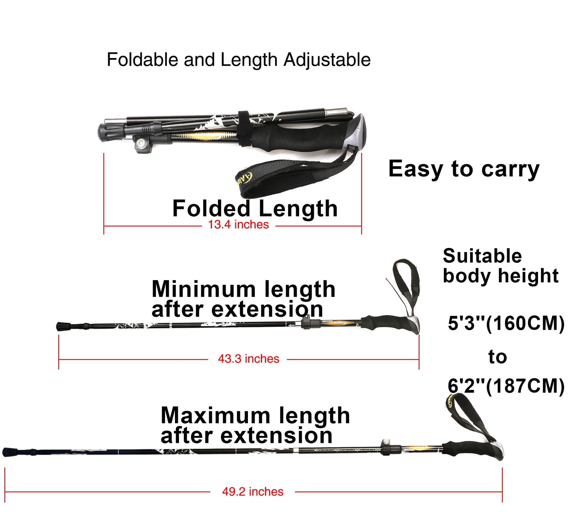 • SUPER COMFORTABLE:EVA Foam Handle with wrist strap, sweat-absorbent, skid resistance groove design,and super comfortable for long time use.International Standard Length of 49' long, and 14.1' when folded, fitting perfectly in your backpack