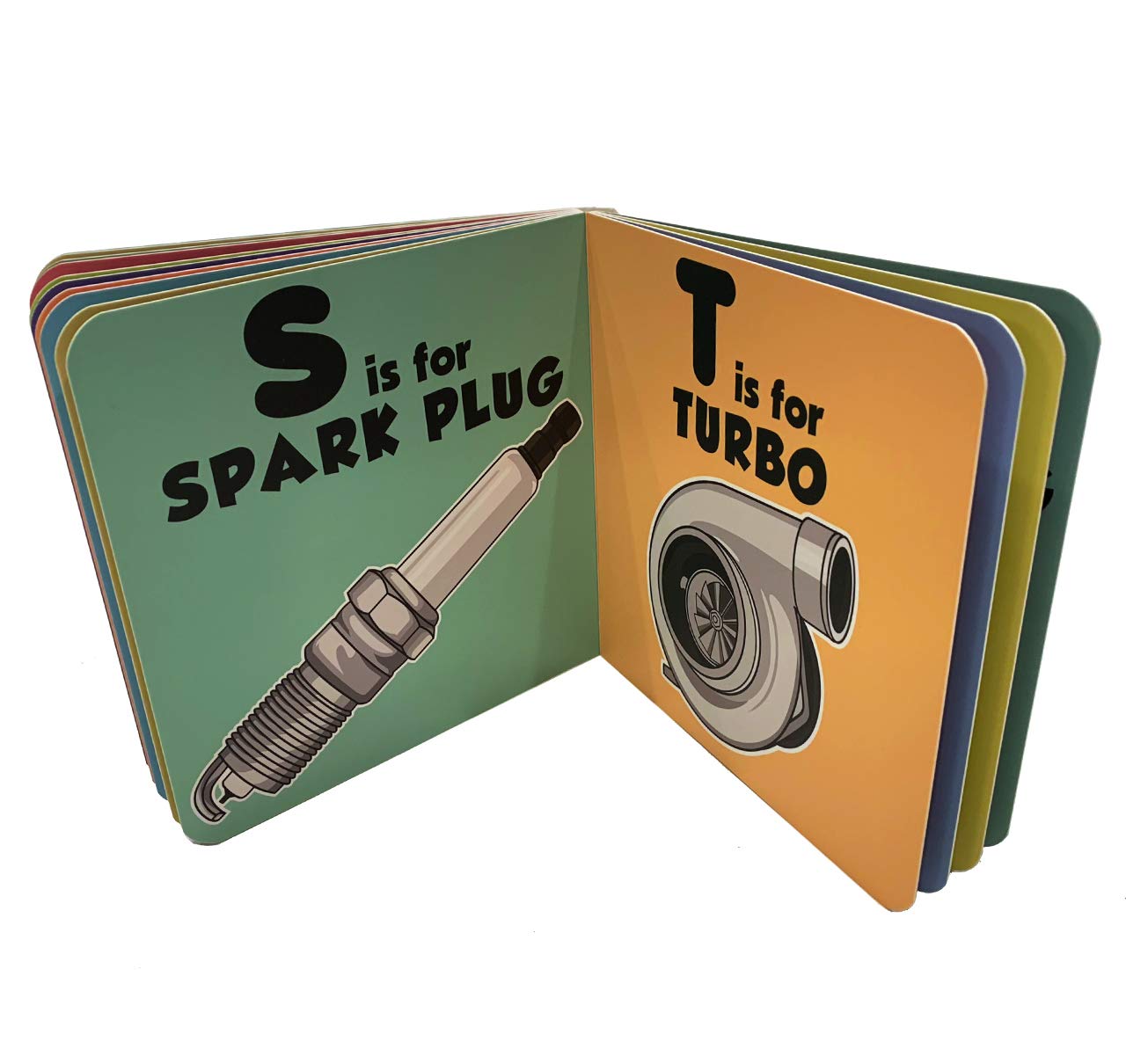 Teach your child the ABC's and encourage learning with car parts and other auto related illustrations!