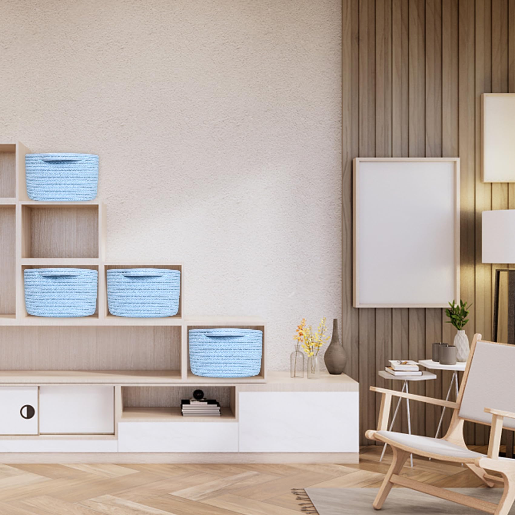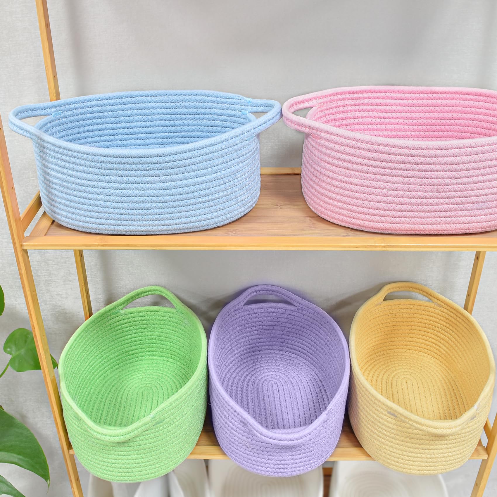 ABenkle Small Basket with Handles - Decorative Durable Rope Woven Storage Bin Shelf Storage Organizer Cube, Easter Baby Gift Basket, 12"x8"x5", Blue