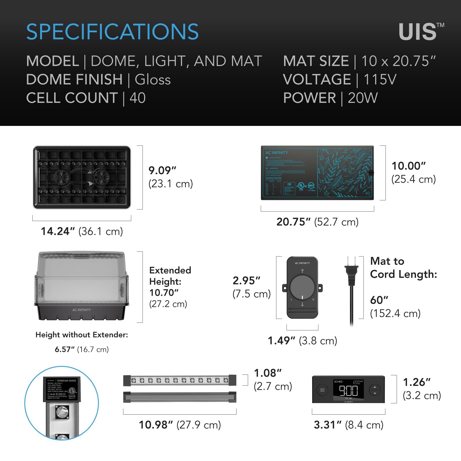 AC Infinity Heavy-Duty Humidity Dome 5x8 Germination Kit with Waterproof Seedling Mat, Full Spectrum LED Grow Light Bars, Samsung LM301H EVO Diodes, Vented Extension Panels, for Seed Starting