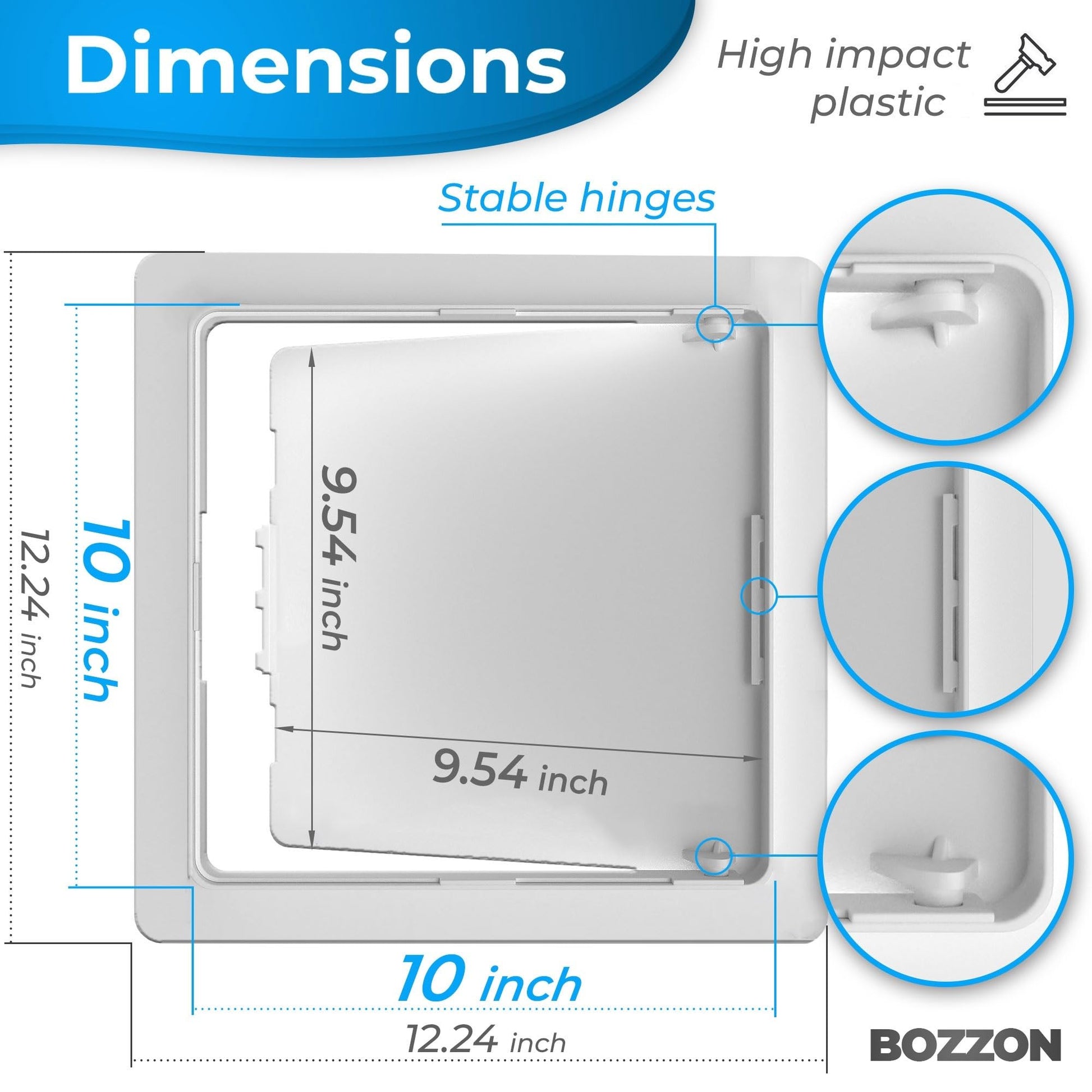 • Repairs Made Easy with the Bozzon drywall access panels. Choose from a variety of sizes to find your perfect fit. Come with a Lifetime Warranty and Money Back Guarantee. We offer a refund for any reason - no questions asked