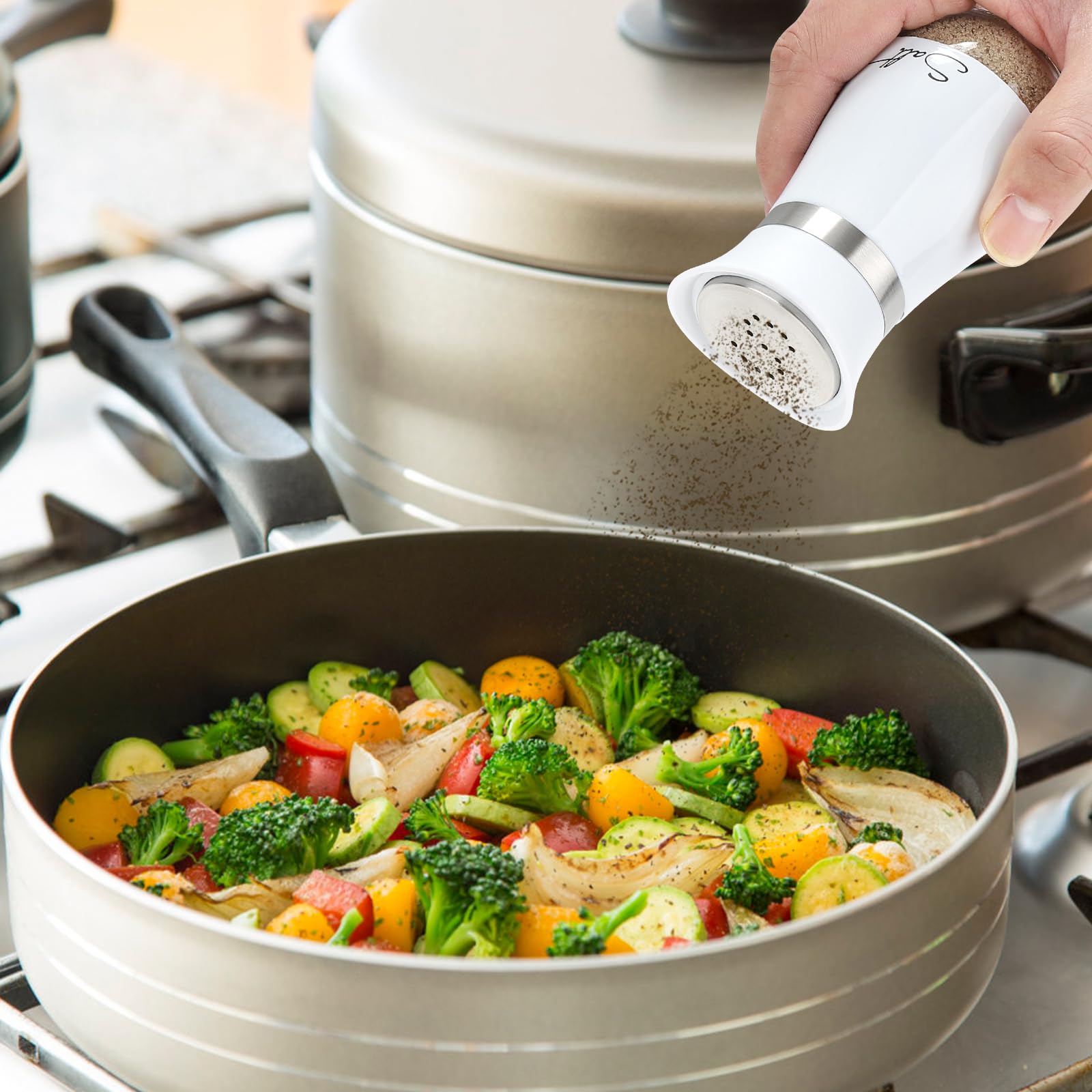 • Perfect Taste Control: These salt and pepper shakers have 11 small holes evenly distributed on the lid. Gently shake 1-2 times to evenly sprinkle salt and pepper on food, which avoids excessive seasoning or uneven taste.