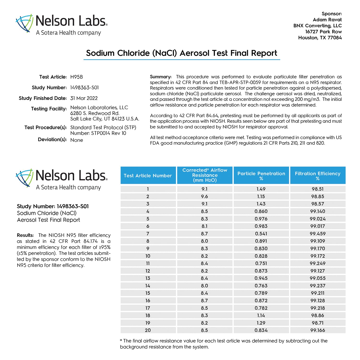 • MADE IN USA – Manufactured by BNX Converting LLC in Houston TX, a NIOSH/CDC Approved and FDA Registered (Registration # 3017489417) manufacturer of N95 mask respirators.