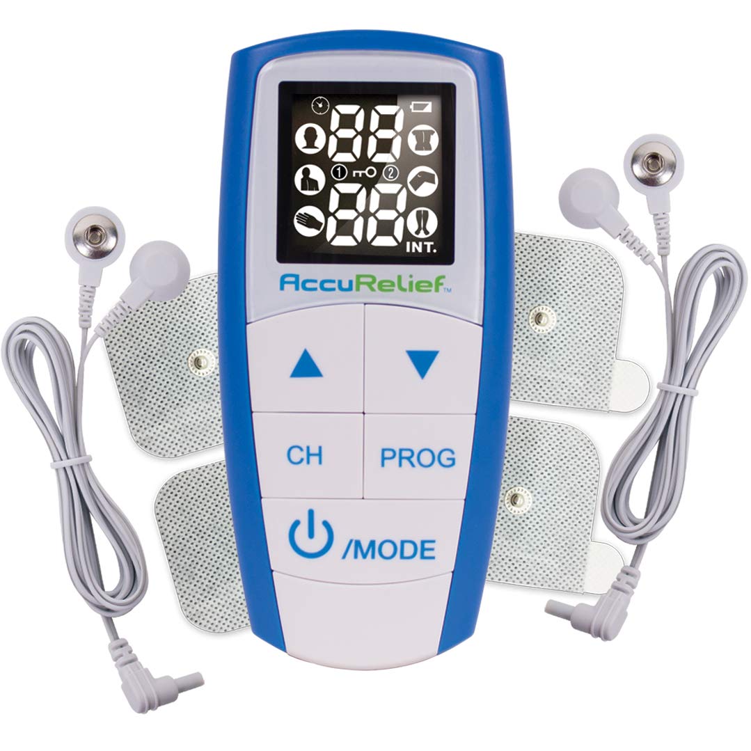 AccuRelief Complete 3-in-1 TENS Unit, EMS, Massager Device - Pain Relief Electric Muscle Stimulator with 4 Electrodes for Neck, Back, and Full Body