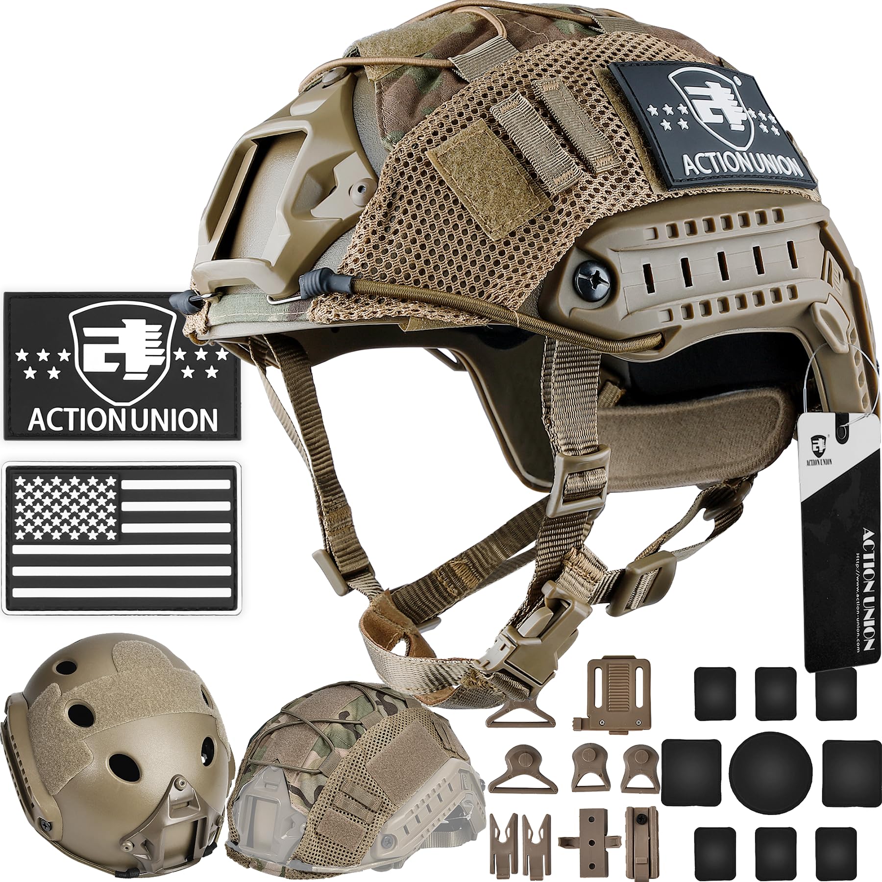 ACTIONUNION Airsoft Helmet Basic Set PJ Type Tactical Paintball Helmet (Medium, Tan)