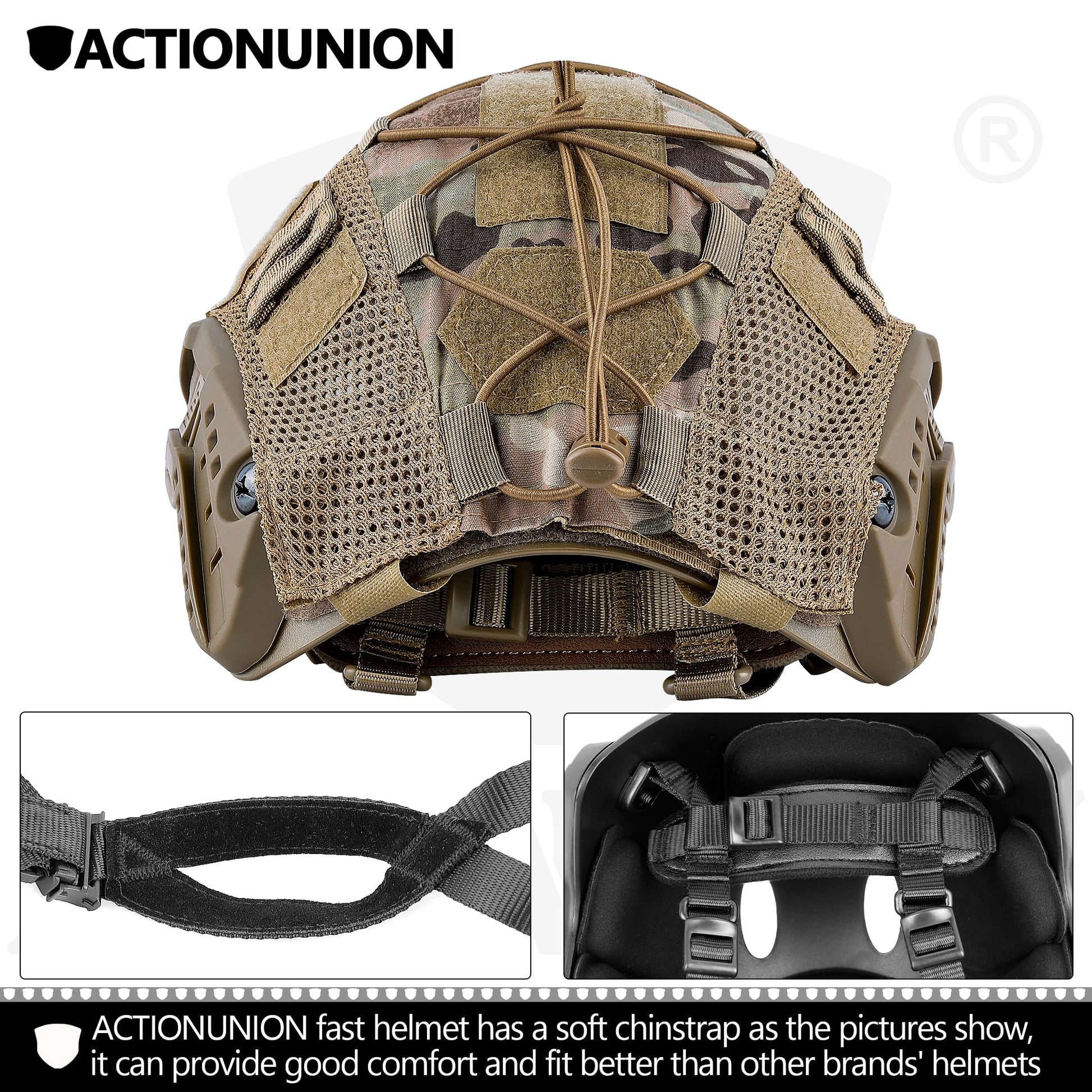 • Adjustable and Comfortable – adjustable chin strap to ensure NVG stability, repositioned modular thickened sponge mat pads for fully wrapped comfort