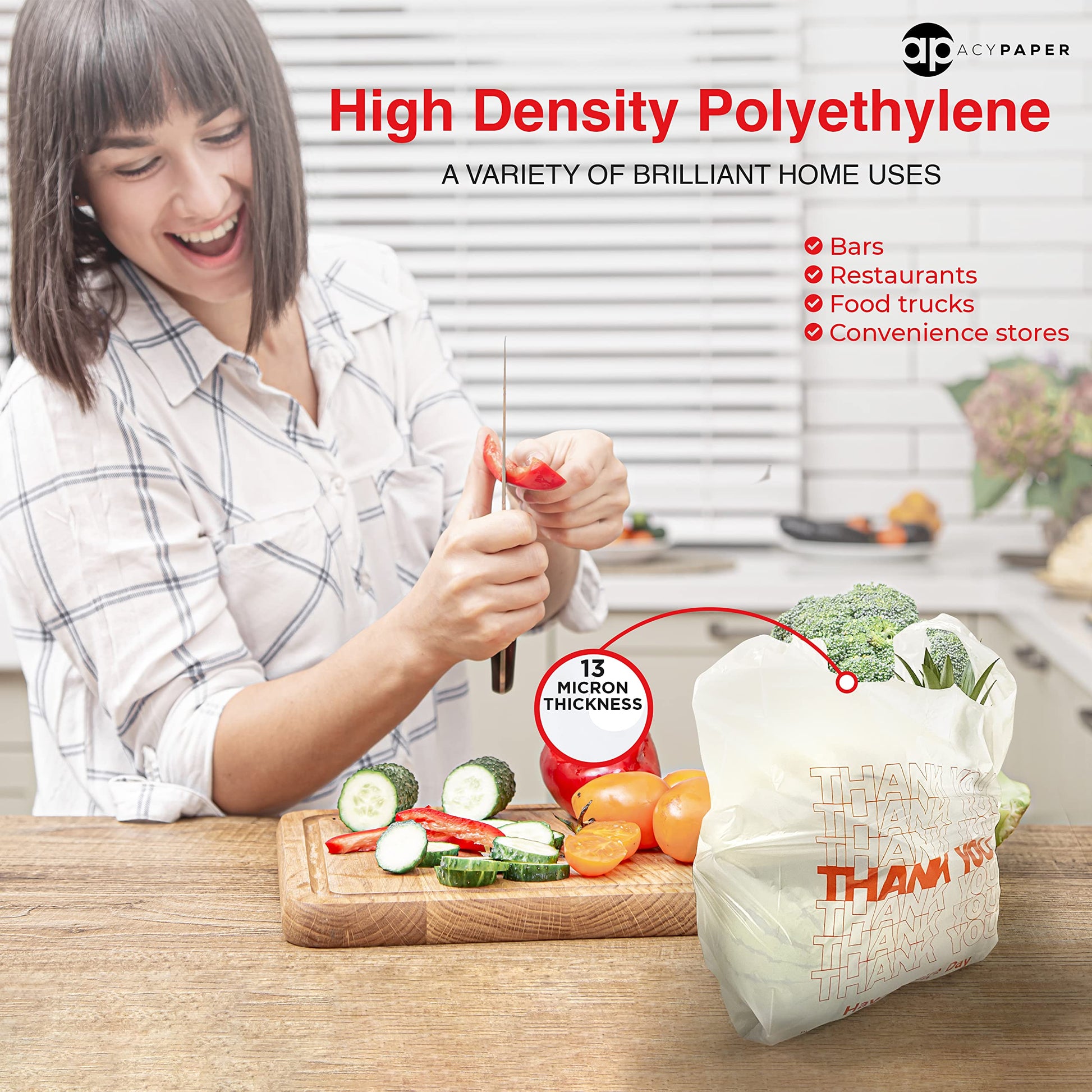 ACYPAPER, Thank You T-Shirt Bags (1000 Count), Plastic - T-Shirt Plastic Bags in Bulk - (11" x 6" x 21") White/Thank You - Bulk Shopping Bags, Restaurant Bag - 1/6 Barrel
