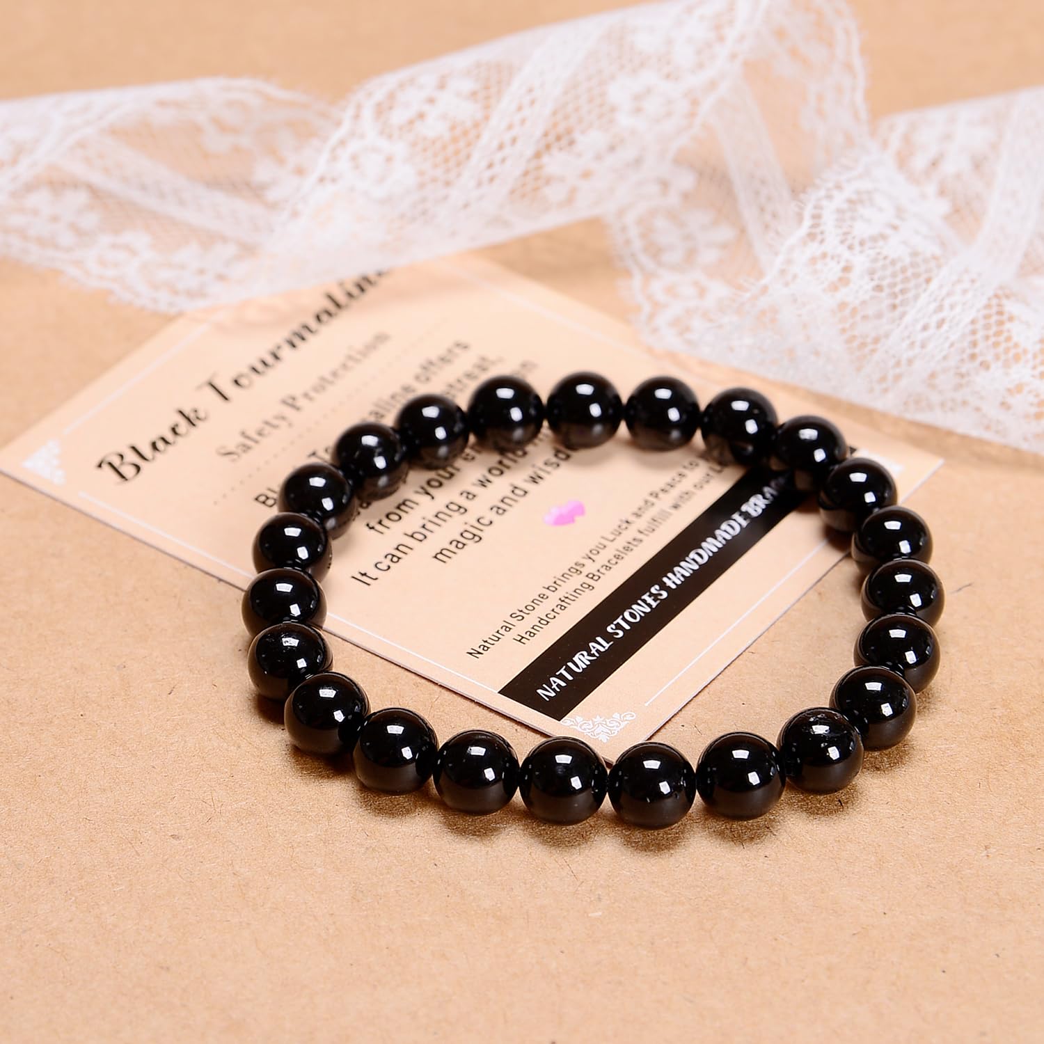 AD Beads Handmade Gemstone Stretch Elastic Bracelet Crystal Healing Reiki Nature's Beauty and Spiritual Essence Unisex (4mm, Black Tourmaline (Best protection))