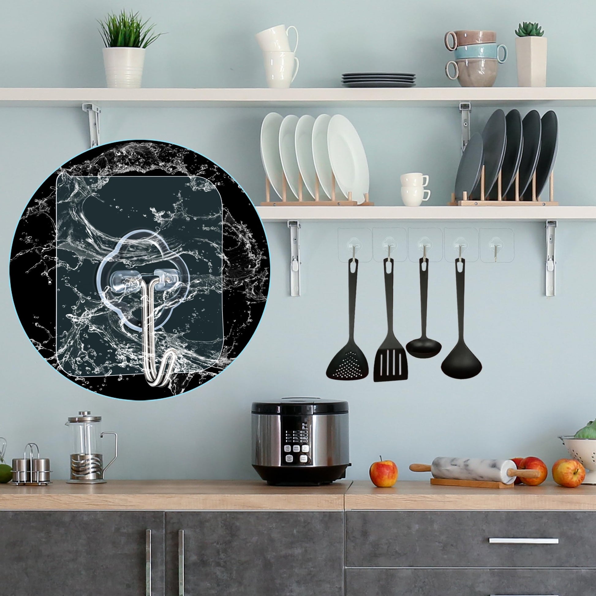 Adhesive Hooks, 32 Pack 33lb(Max) Sticky Hooks, Transparent Reusable Removable Adhesive Hooks for Hanging, Wall Hooks for Hanging Can be Use for Kitchen Bathroom Shower Outdoor Home Improvement