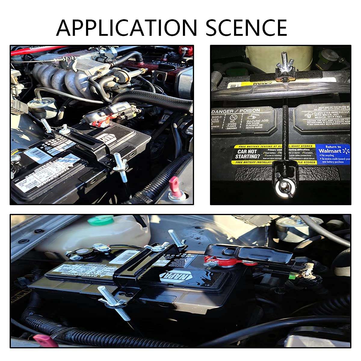 • Great Material: This car battery hold down is made constructed with premium iron & stainless steel material, sturdy, and available for long service life.Special spray process for enhancing its corrosion and rust resistance.