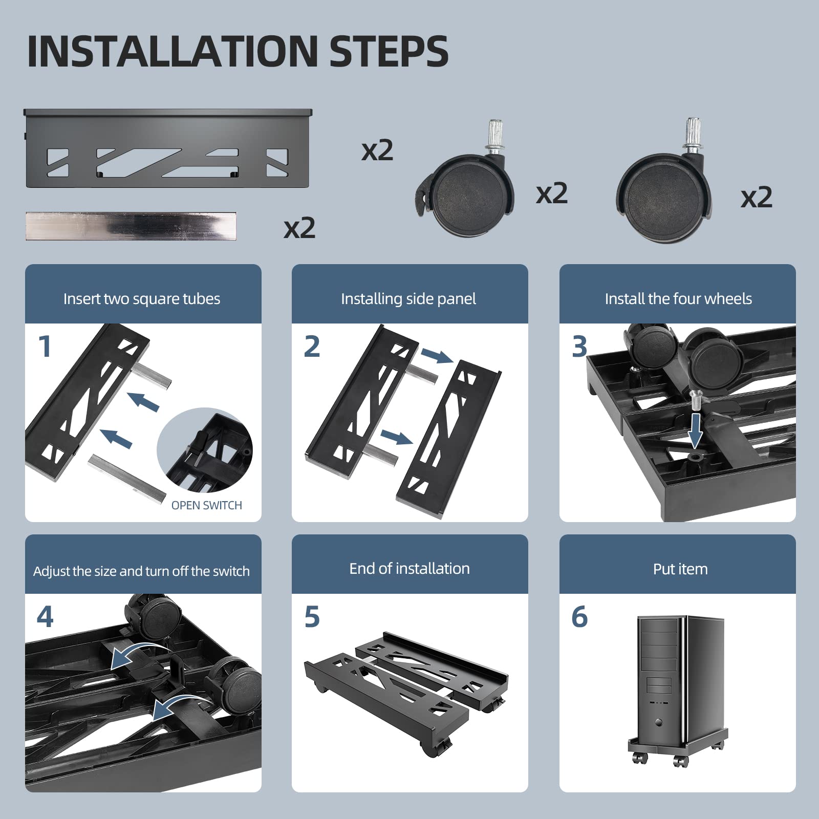 • Ventilation and Heat Dissipation: The perforated design at the bottom of the computer tower stand keeps your computer tower at a sufficient distance from the floor to speed up heat dissipation. The pc stand also provides additional surface clearance for better ventilation and cooling of the chassis with the power supply installed at the bottom, and greatly protect your computer tower