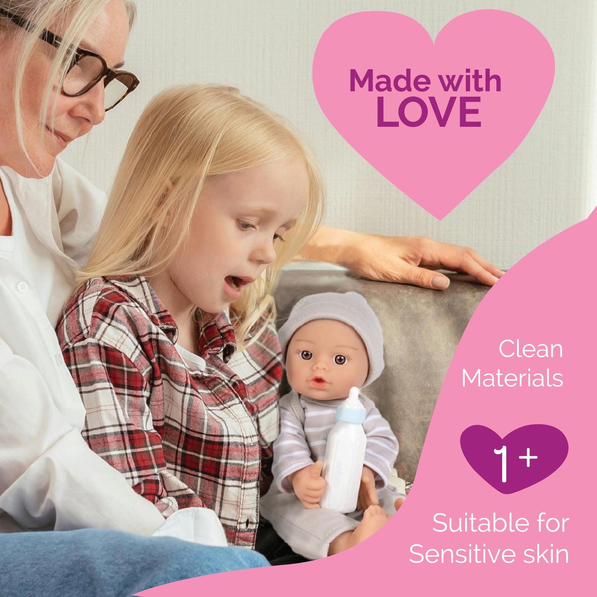 • Soft & Easy to Hold: This 11” baby doll has a lightweight cloth body that’s comfortable to carry and built for durability. Its flexible design allows for easy positioning, making it great for interactive play, rest time, or travel without feeling bulky or hard to manage