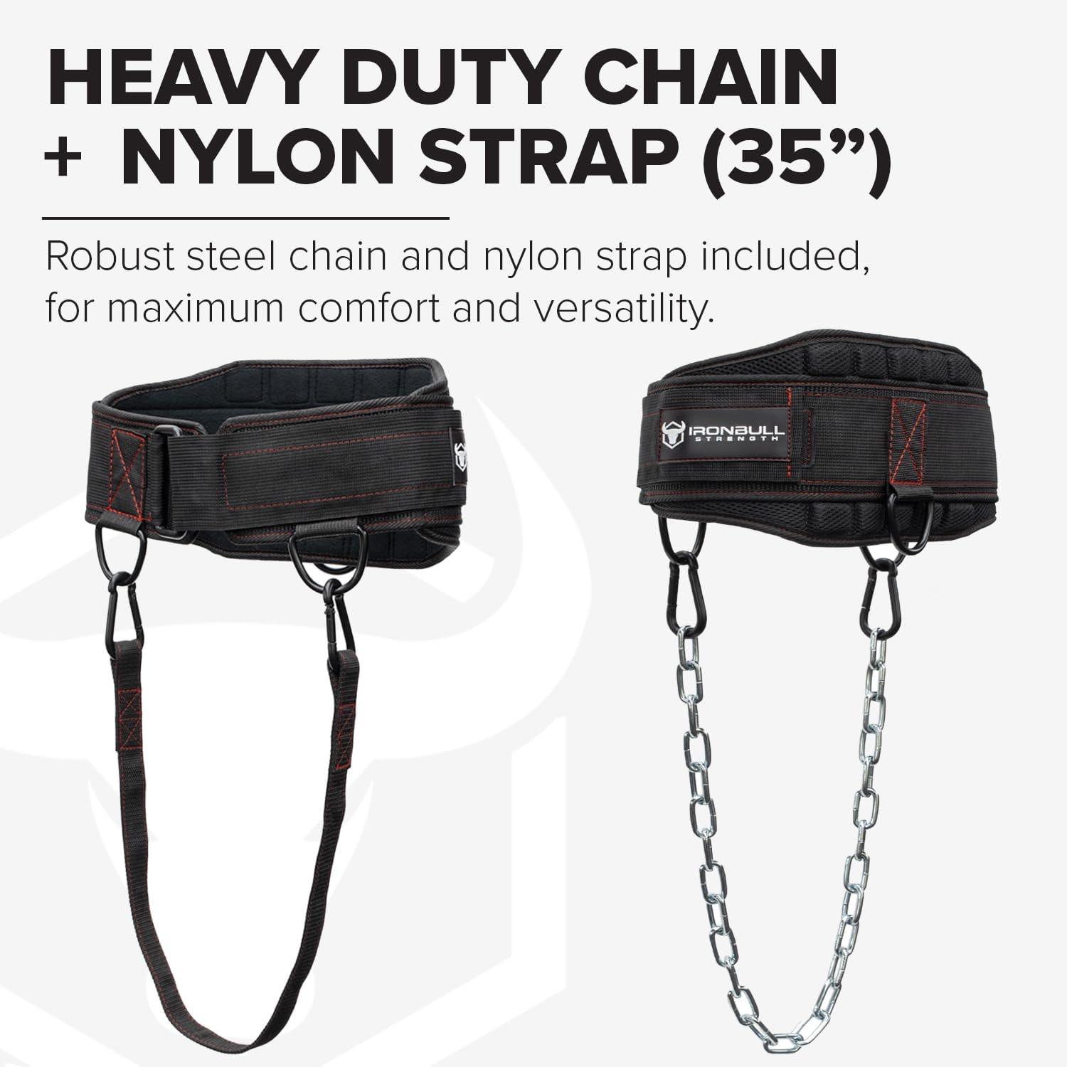 INCLUDES CHAIN AND NYLON STRAP - Engineered for ultimate versatility, this dip belt includes both a heavy-duty steel chain and a high-strength nylon strap. Effortlessly switch between different attachment styles for different training scenarios.