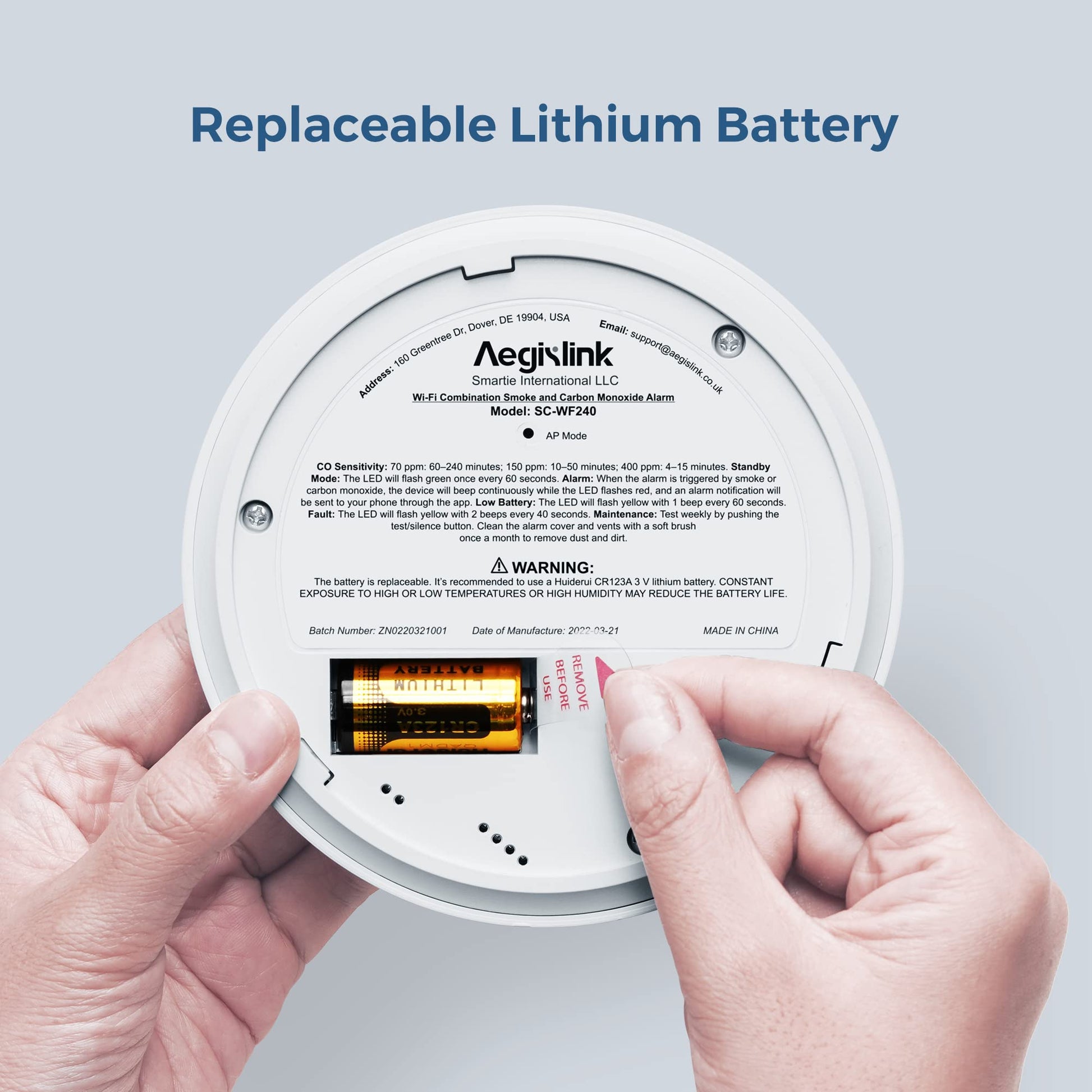 AEGISLINK Wi-Fi Combination Smoke and Carbon Monoxide Detector with LCD Display & Replaceable Battery, Compatible with TuyaSmart & Smart Life App, SC-WF240
