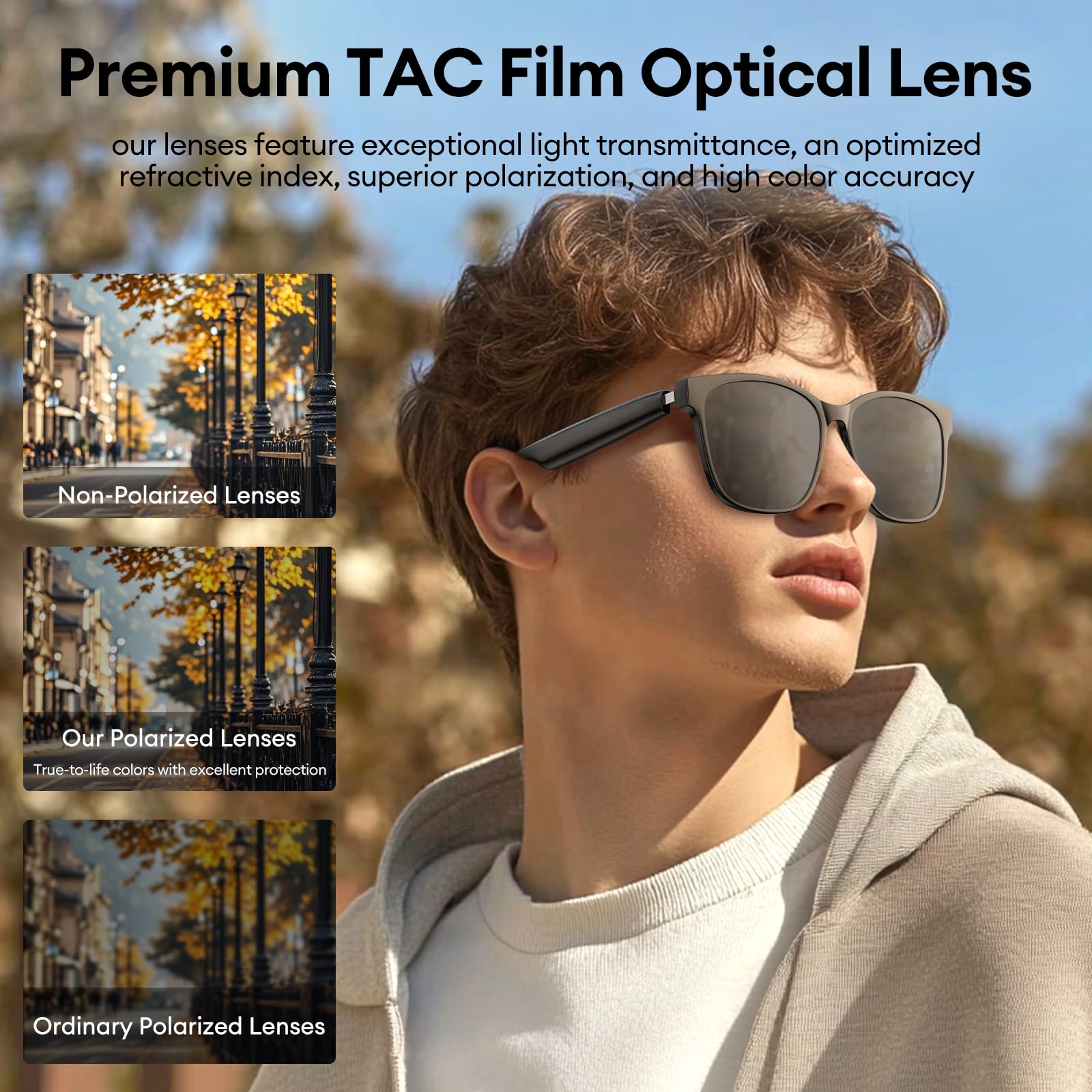 • Sleek, Smart & Ultra-Lightweight for All-Day Comfort: Elevate your style with a sleek, modern frame that blends fashion with technology. Intuitive touch controls and voice assistant compatibility make these bluetooth sunglasses the perfect companion for effortless communication, entertainment, and convenience on the go
