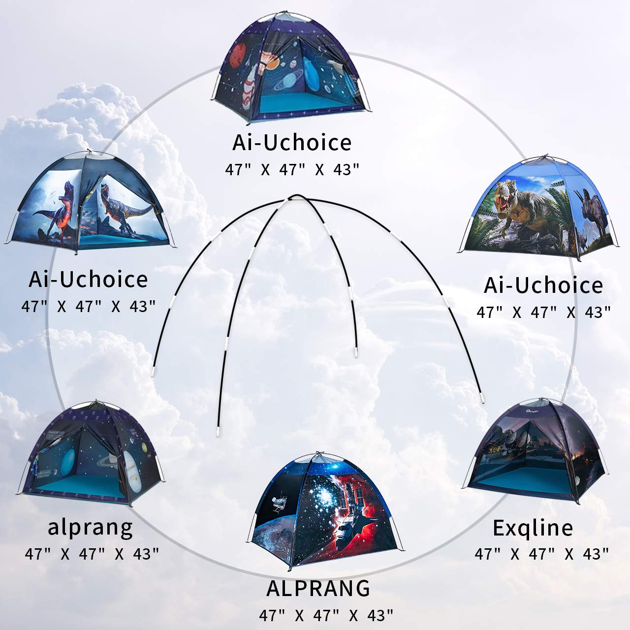 • 🐥🐣🐤【KIDS TENT POLES】47”*47”*43” kids tent poles are made of fiberglass, it is sturdy ,high-strength, flexible, and durable to use.Ideal replacement poles for space world tent/galaxy tent/ observatory tent/ dinosaur tent
