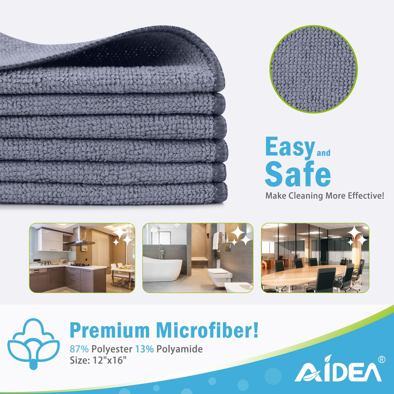 AIDEA Microfiber Cleaning Cloth-24PK, Soft Microfiber Towels for Cars, Absorbent Cleaning Rags, Lint-Free Streak-Free Wash Cloths for House, Kitchen, Window(12inx16in)