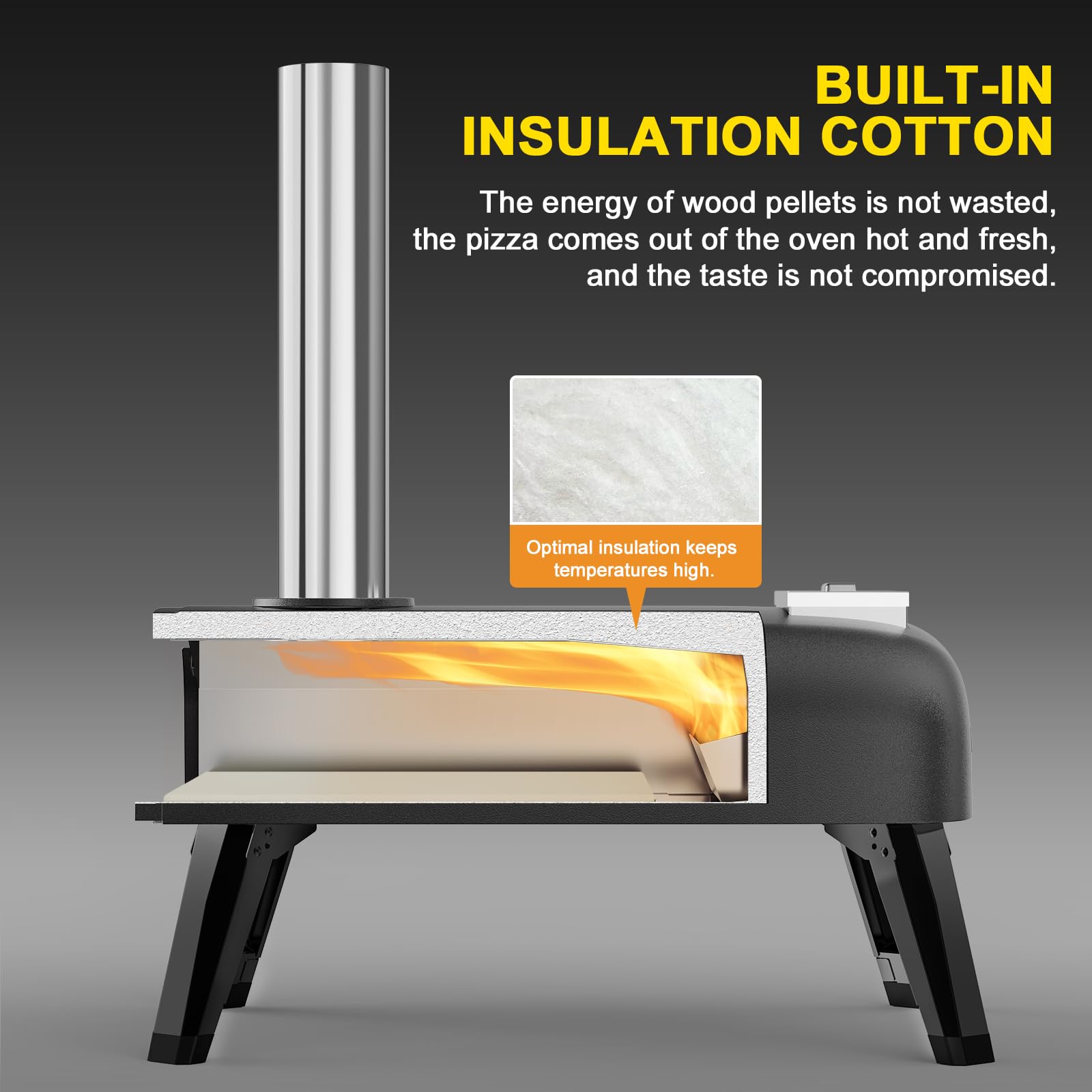 • Wood pellet pizza oven can cook 12 inch pizza for multiple people to share, suitable for family party The Outdoor pizza oven