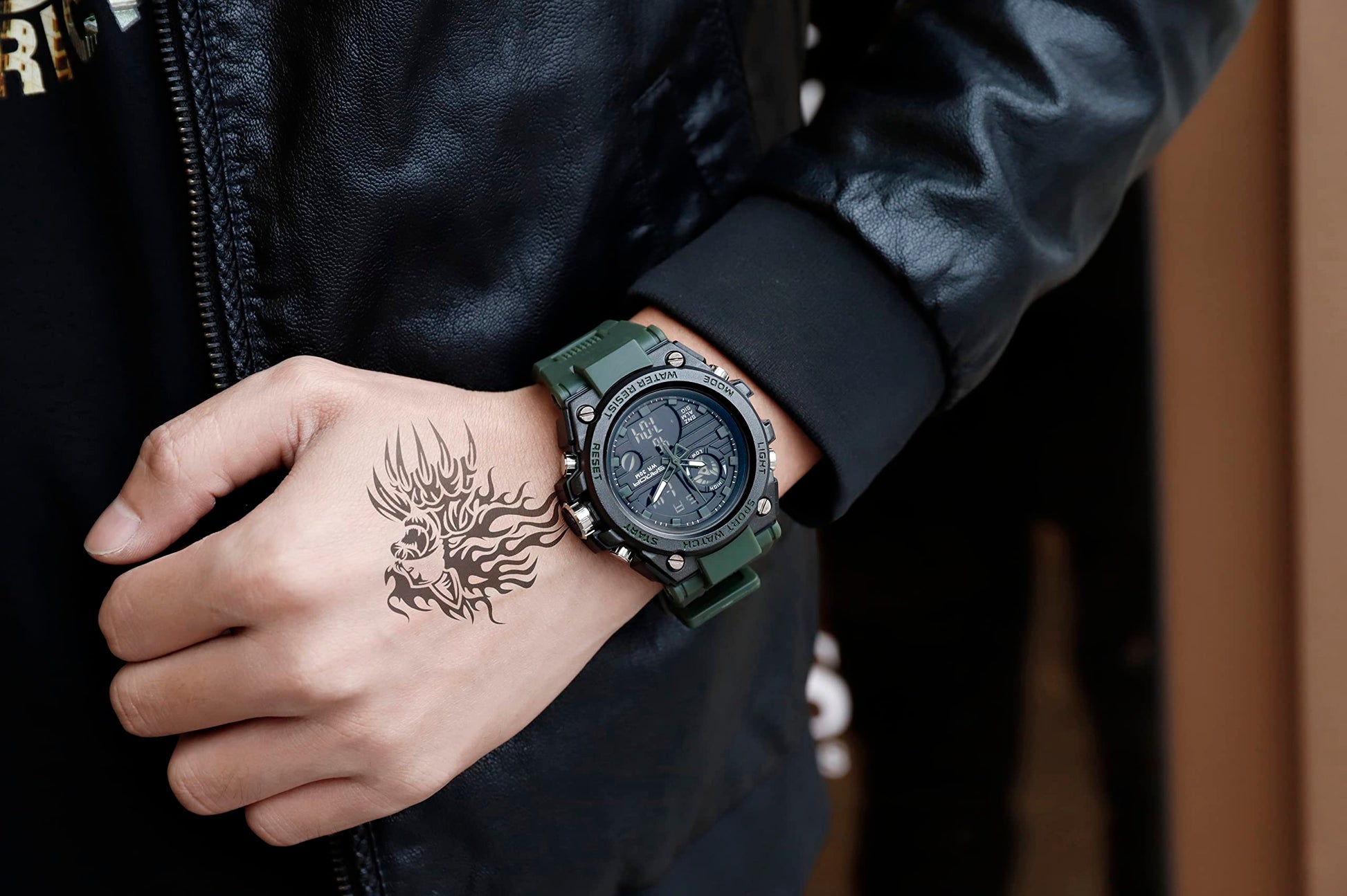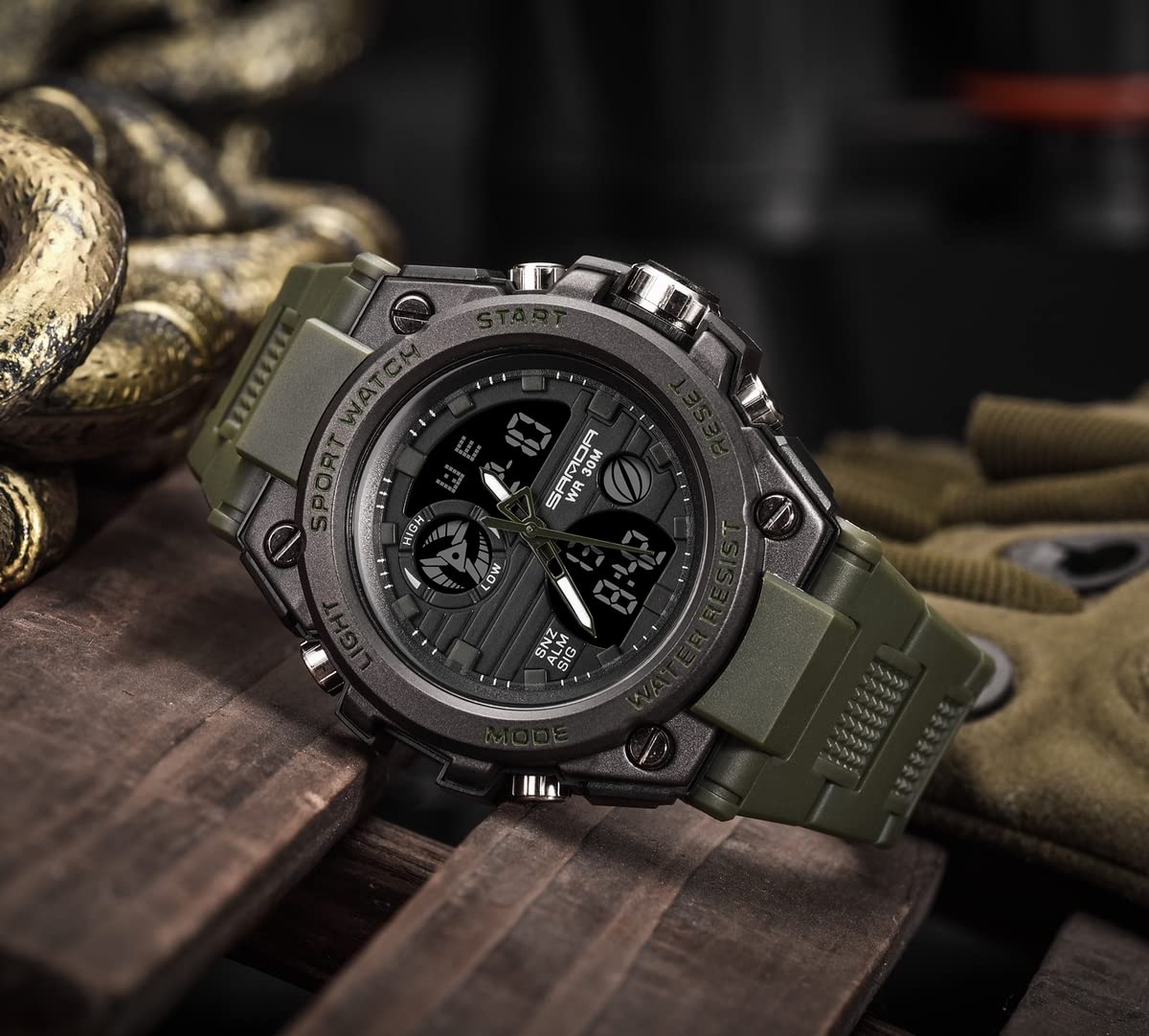 • Military Sport Design: Fashionable sporty dial design, military style outlook. Large Dial (acrylic crystal glass window,case diamete High quality watch band,Reinforced resin band design is more ergonomic, comfortable to wear.Dial diameter is 2 inch / 50mm), who like large dial watch should love this fashion sport watch