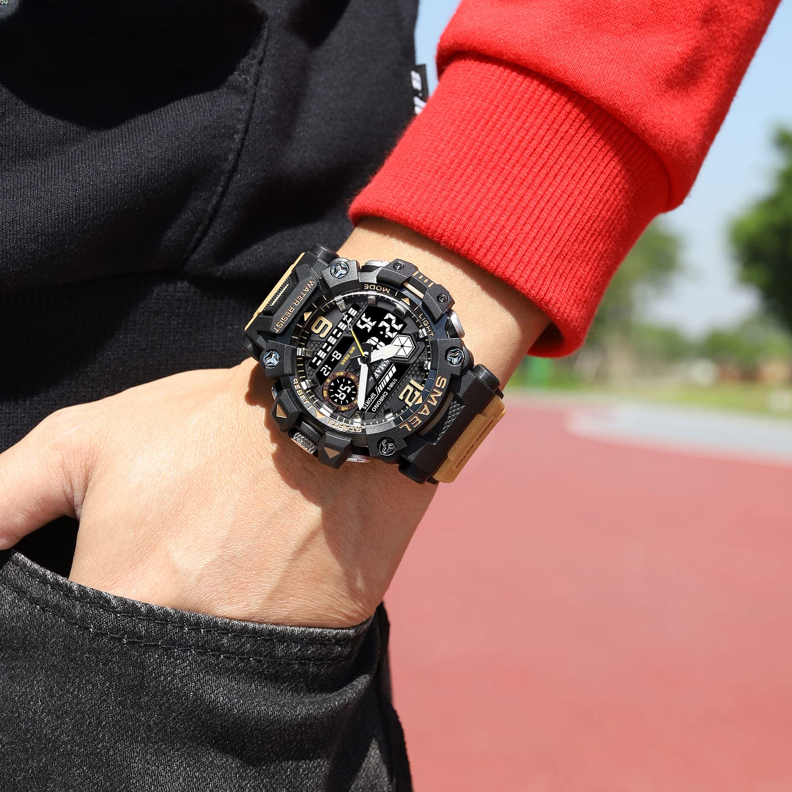 • Mens Military Watch: Cool large sporty dial designed, big face diameter (2.12 inch/54mm), Digital and Analog dual displays and mulitifunction watch, fits both outdoor and indoor activities, such as running, hiking and so on, easy to set up after reading the manual