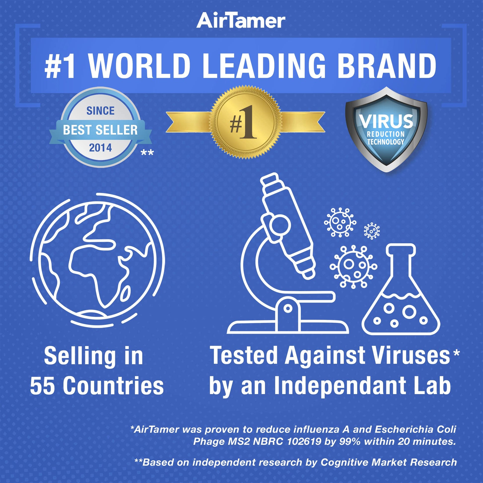 • SPECIFICATIONS: Power Boost Technology provides 9 times more cleaning power; Breathe 875% cleaner air, the AirTamer A310PMB is certified to filter more pollutants than any of its closest competitors; Silent operation, no noisy fans or motors; No filters to change; USB charging cable, lanyard, and leather travel case are included.
