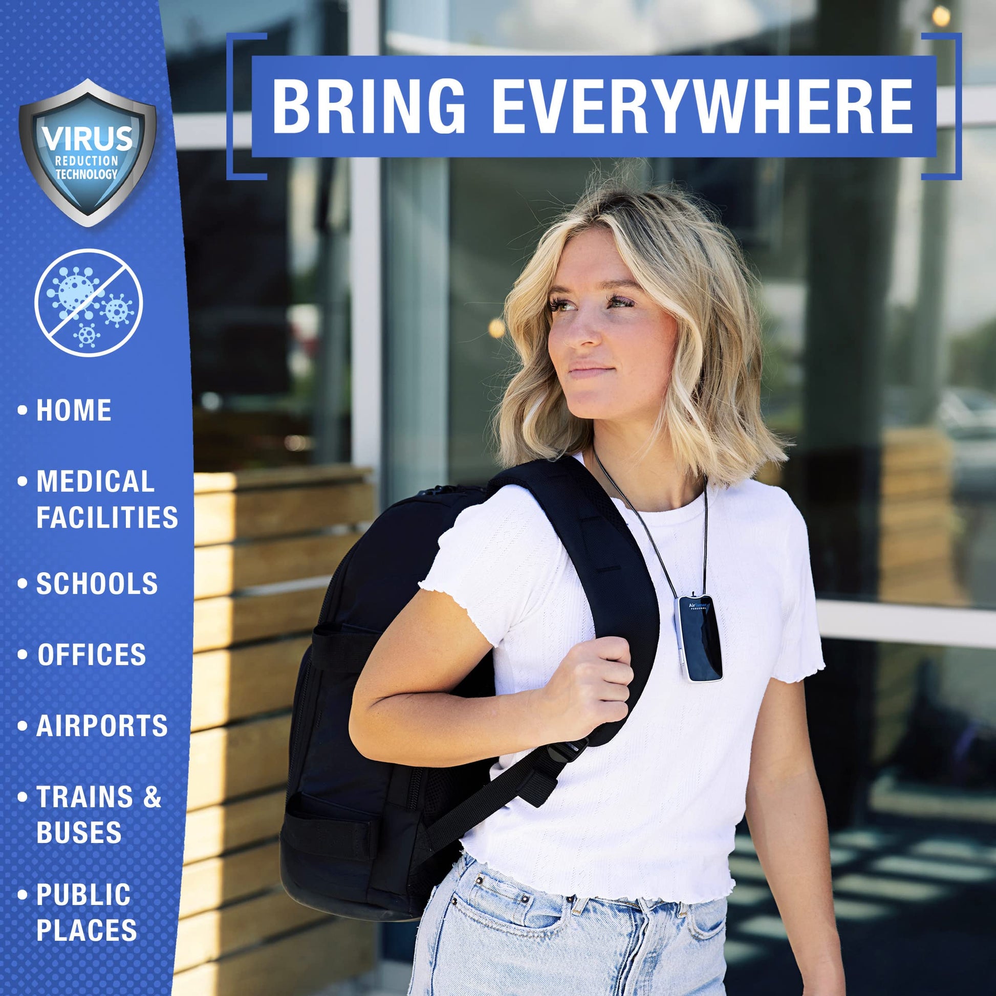 • TAKE IT ON THE GO: The AirTamer A310PMB is the perfect travel accessory for those who love to explore without exposure to unsanitary air; Our A310PMB model includes a proprietary conductive lanyard which is adjustable and features a break-away connector for extra safety; Wear it around your neck and have a sphere of breathable clean air anywhere you go.