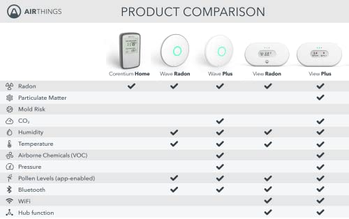 Airthings Corentium Home Radon Detector 223 Portable, Lightweight, Easy-to-Use, (3) AAA Battery Operated, USA Version, pCi/L