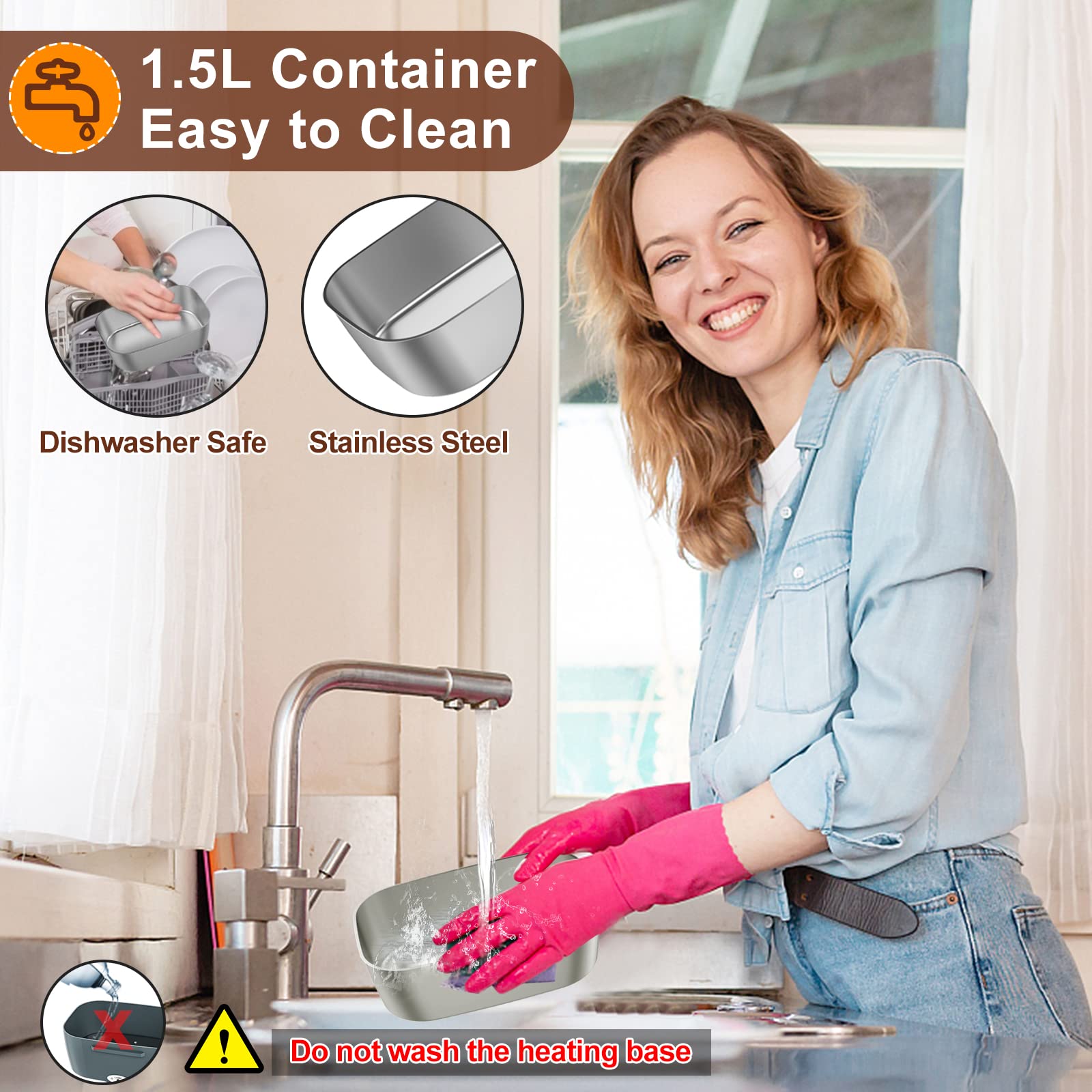 • 💪 Military-Grade Leakproof & Drop Resistance Answers to real concerns: ✔️ 4-side reinforced latches silicone sealing ring prevent spills even when shaken ✔️ 2mm thickened ABS lid survives accidental drops from countertops ✔️ Detachable heating base – simply wipe clean after cheesy messes