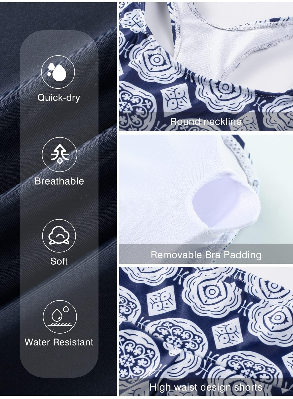 • Athletic Style: You can wear the sports bra top while sun bathing and put on the tankini when walking around. Sporty swimwear with the racerback bikini top is cute and flattering. U-neck tankini top is loose and long enough to hide your belly, special open back design perfectly show your curves