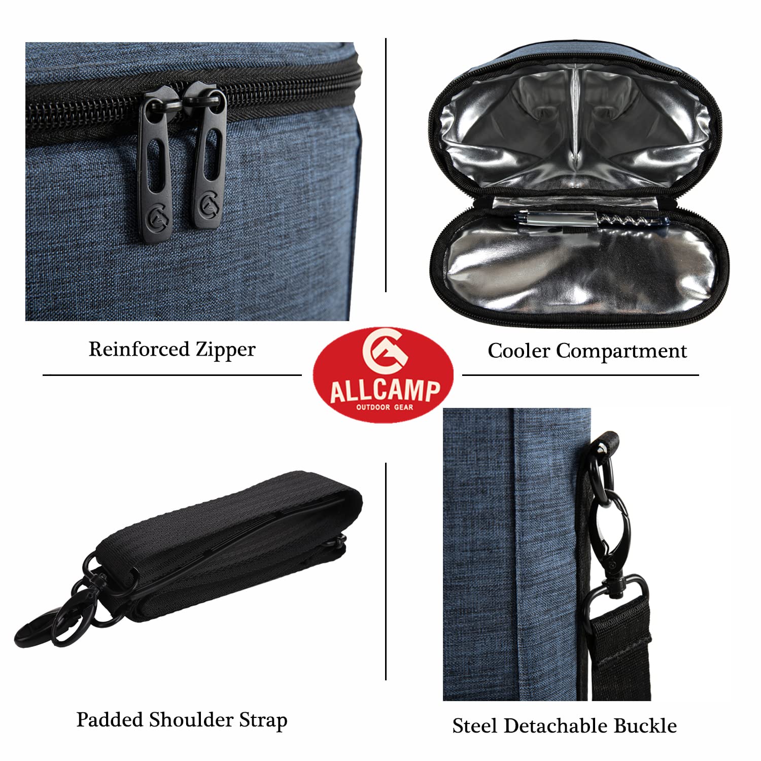 • Great gift/present-There are numerous occasions to drink a glass or two like business, family gathering, friends party, anniversaries and Christmas. ALLCAMP wine travel bag is a great gift to help store wine to prolong flavor and eventually enjoy your beverage for that special occasion.