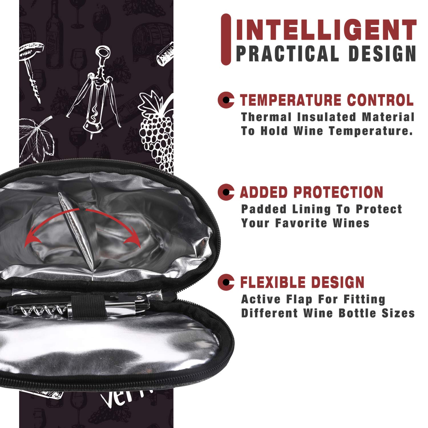 • PERFECT SIZE FOR OUT AND ABOUT: With exterior dimensions of 8.3 x 4.3 x 13.2 inches, this compact wine tote bag fits easily into your car or storage space without taking up too much space.