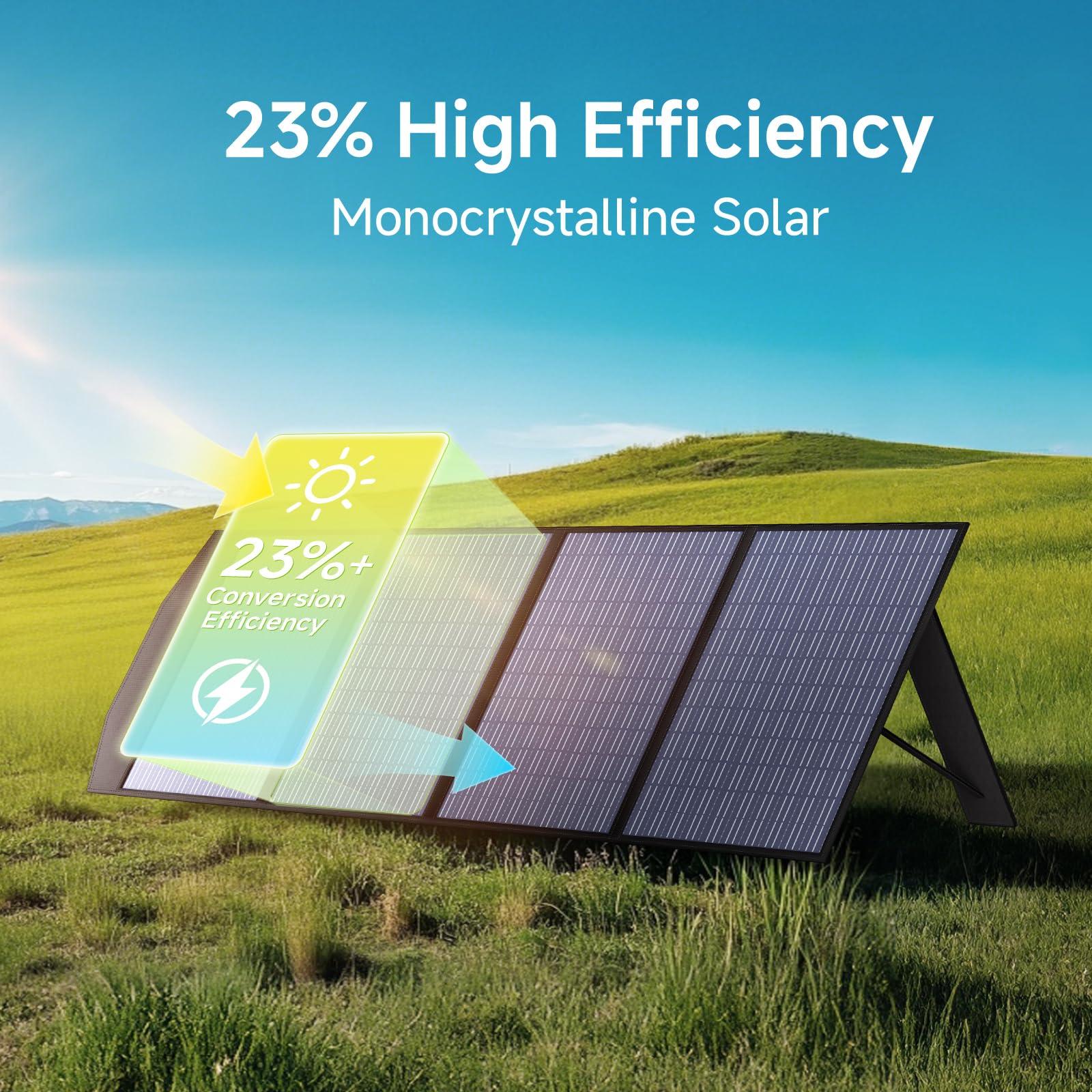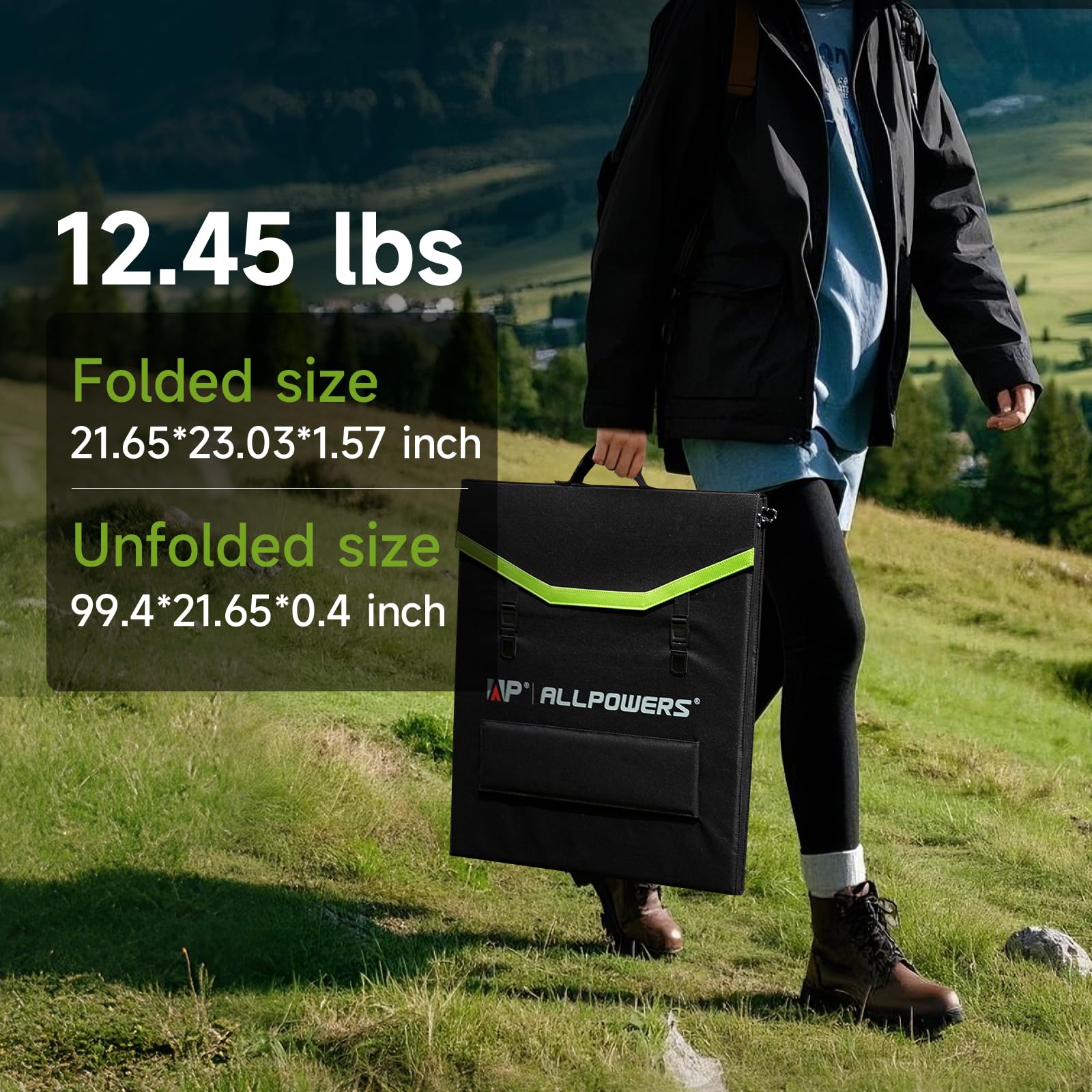 • ▶【Foldable & Portable】: Folded size only 21.65x23.03x1.57inch,12.45lb, 200W solar panel is great for traveling the without electricity and won't take up much room in your bag. ALLPOWERS foldable solar charger features solar connector output(25A max), providing endless power for power station in camping, outdoor, garden, motorhome, and caravan under the sun.