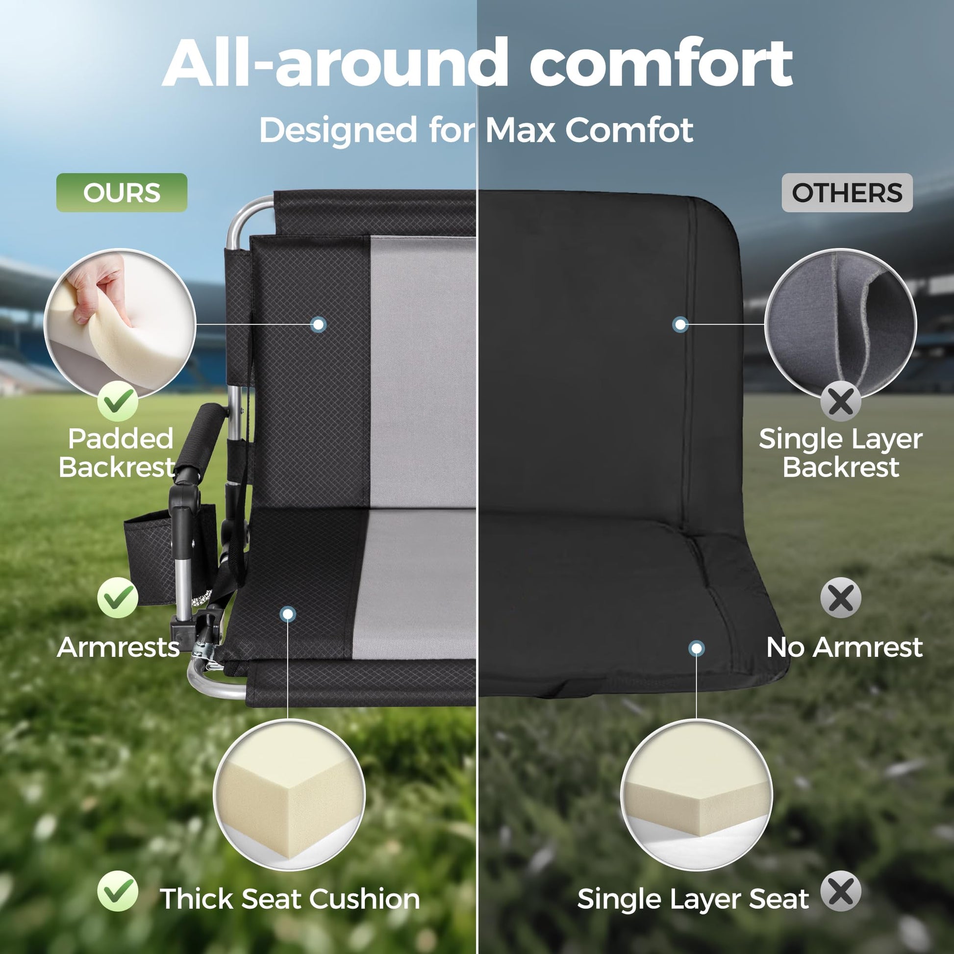 ALPHA CAMP 2 Packs Stadium Seat Chair for Bleachers with Back & Arm Rest, Black Grey