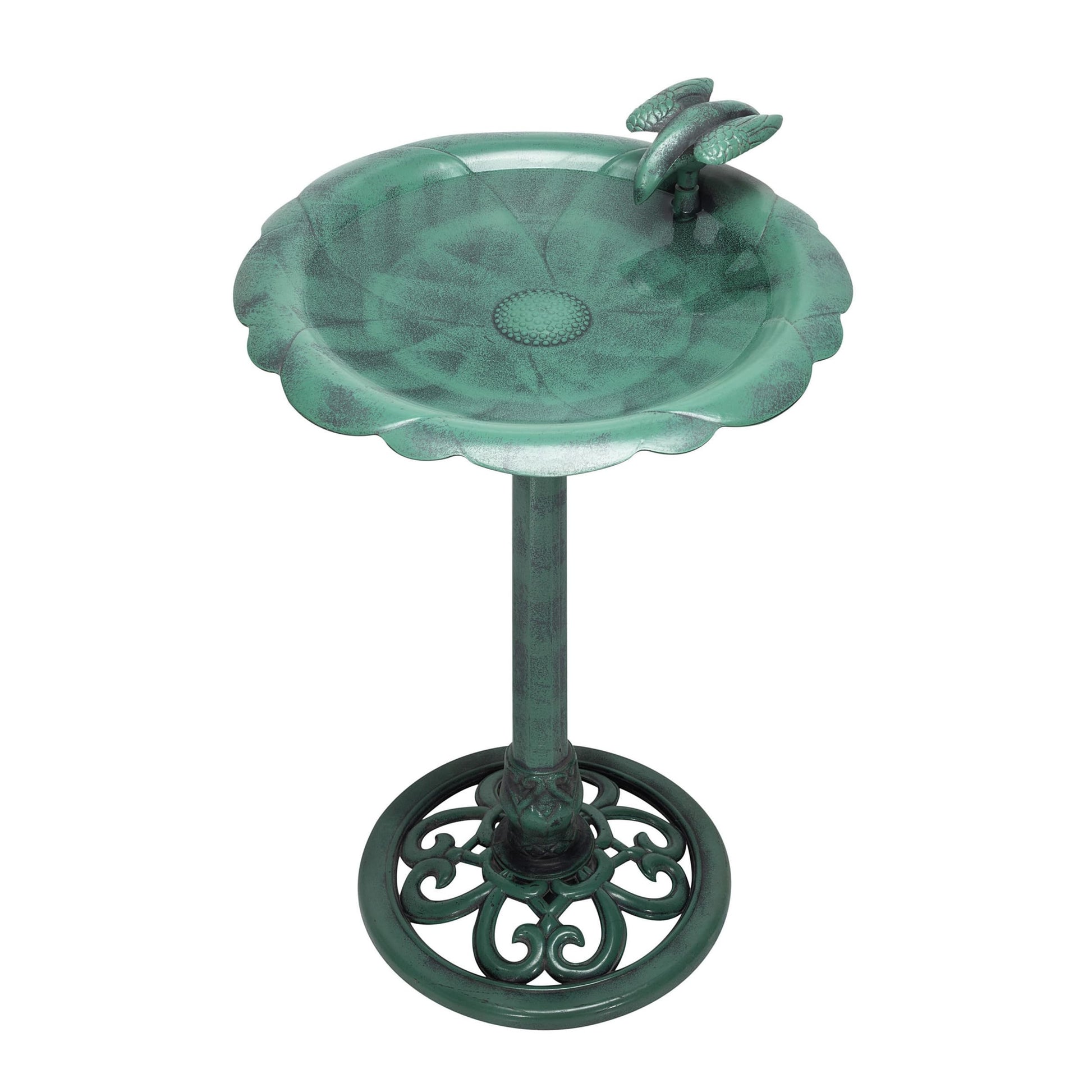 Details: The Alpine Corporation 31'' Tall Antique Flower Birdbath is a charming addition to any outdoor space, designed to attract a variety of birds while enhancing the beauty of your garden, patio, or deck. Standing at 31'' tall, this birdbath features an antique-inspired flower design and a delicate bird decoration perched on the rim. Its natural green finish blends seamlessly into your outdoor environment, adding a rustic and inviting touch.This birdbath's wide, shallow bowl offers a safe and accessible spot for birds to bathe and drink. The shallow design ensures multiple small birds can comfortably use it at once, making it the perfect feature for birdwatchers or nature lovers. Whether used in the warmer months for drinking and bathing, or in winter to hold birdseed when water may freeze, it serves as a versatile and welcoming feature for your yard.Made from durable polypropylene, this birdbath is resistant to rust, fading, and damage from the elements. The sturdy base ensures stability, even in windy conditions, preventing the birdbath from tipping over. It’s easy to maintain—simply fill the bowl with water, or use it to offer birdseed during colder weather.Measuring 20''L x 20''W x 31''H, this birdbath is the perfect size for gardens, patios, and decks of all sizes. Its beautiful design and functional features will create an oasis for birds while adding a unique focal point to your landscape. The 1-year manufacturer's support ensures you can trust in the quality and durability of your purchase.With the Alpine Corporation Antique Flower Birdbath, you can create an outdoor sanctuary for both you and the birds. Perfect for any season, this birdbath is a beautiful, functional, and durable addition to your home’s exterior.